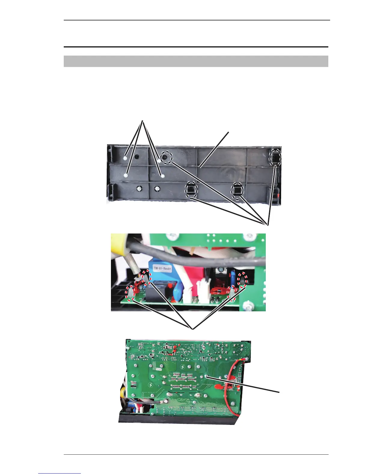 2. Secure HF PCB to Base Panel with four plastic umbrella-shape screws.