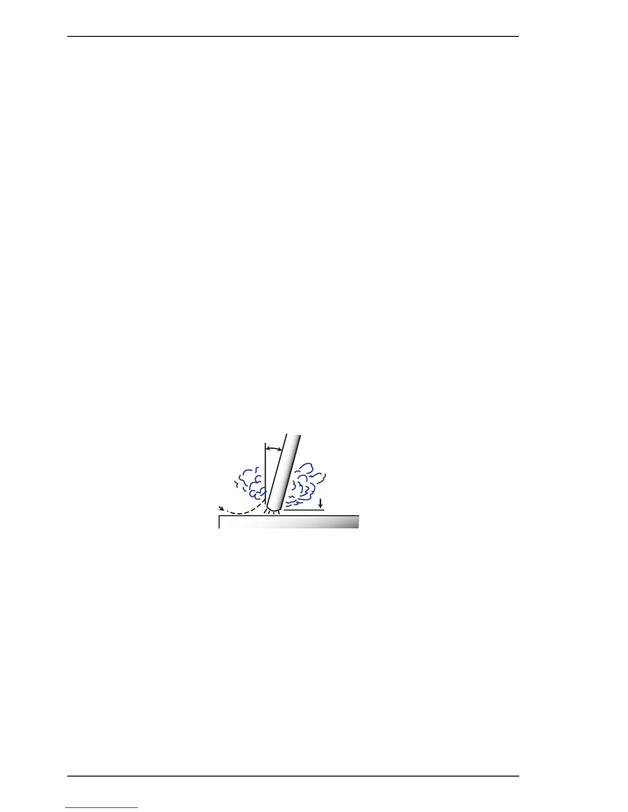 plate to form a bead. The electrode is directed at the weld pool at about 20º from the vertical. The rate of travel