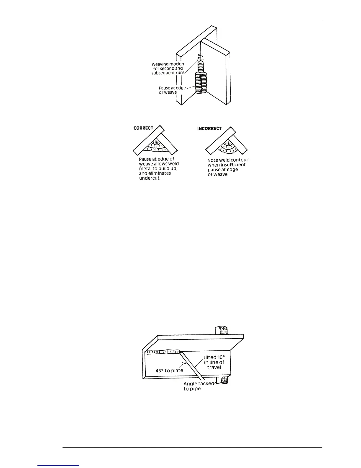 The electrode is held at 45º to the horizontal and tilted 10º in the line of travel (Figure 4-18). The tip of