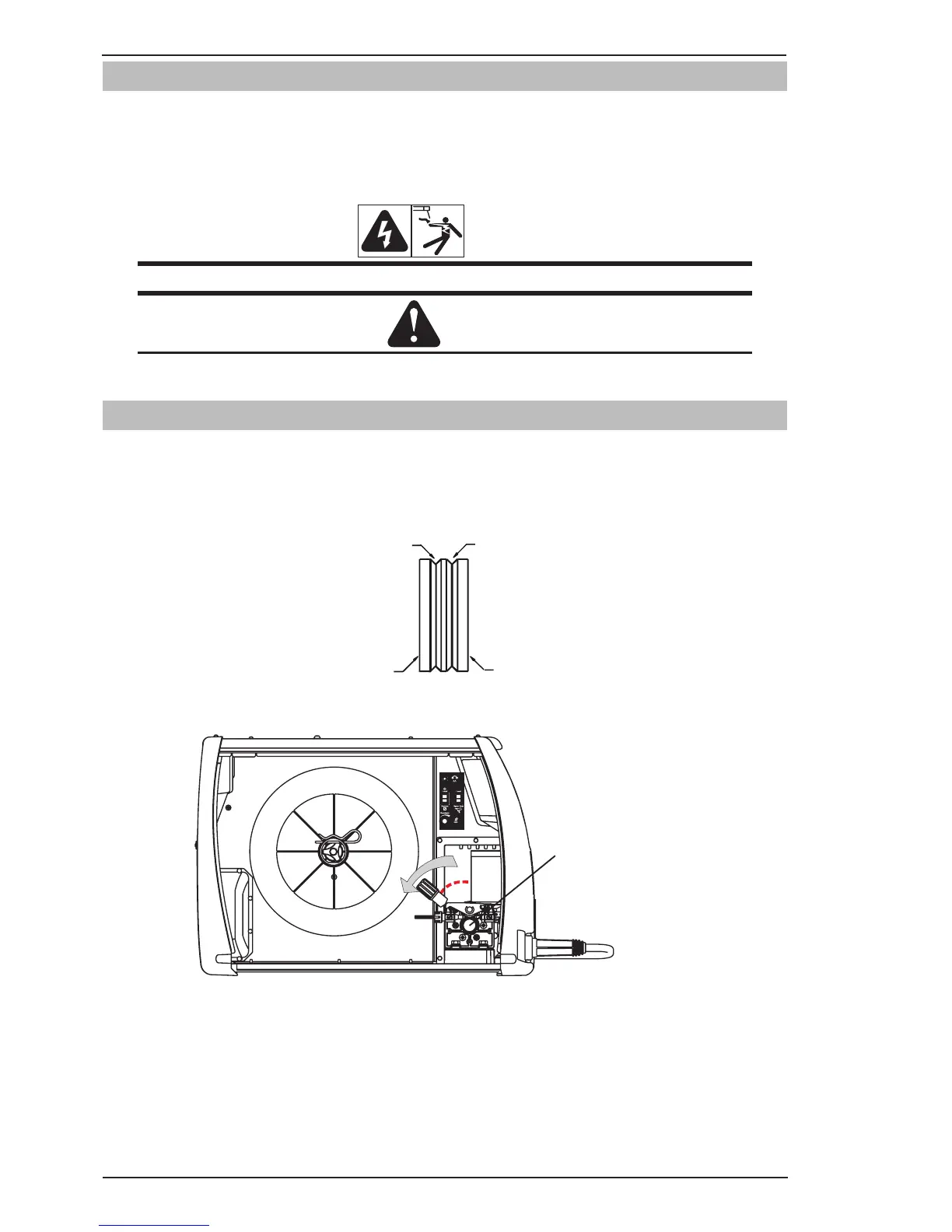 Before changing the feed roller ensure that the mains supply to the power source is switched off.