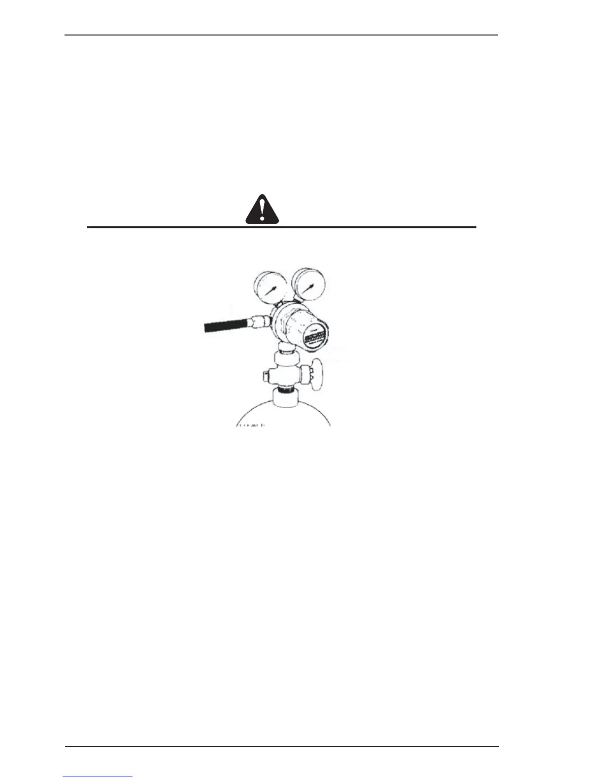 Match regulator to cylinder. NEVER CONNECT a regulator designed for a particular gas or gases to