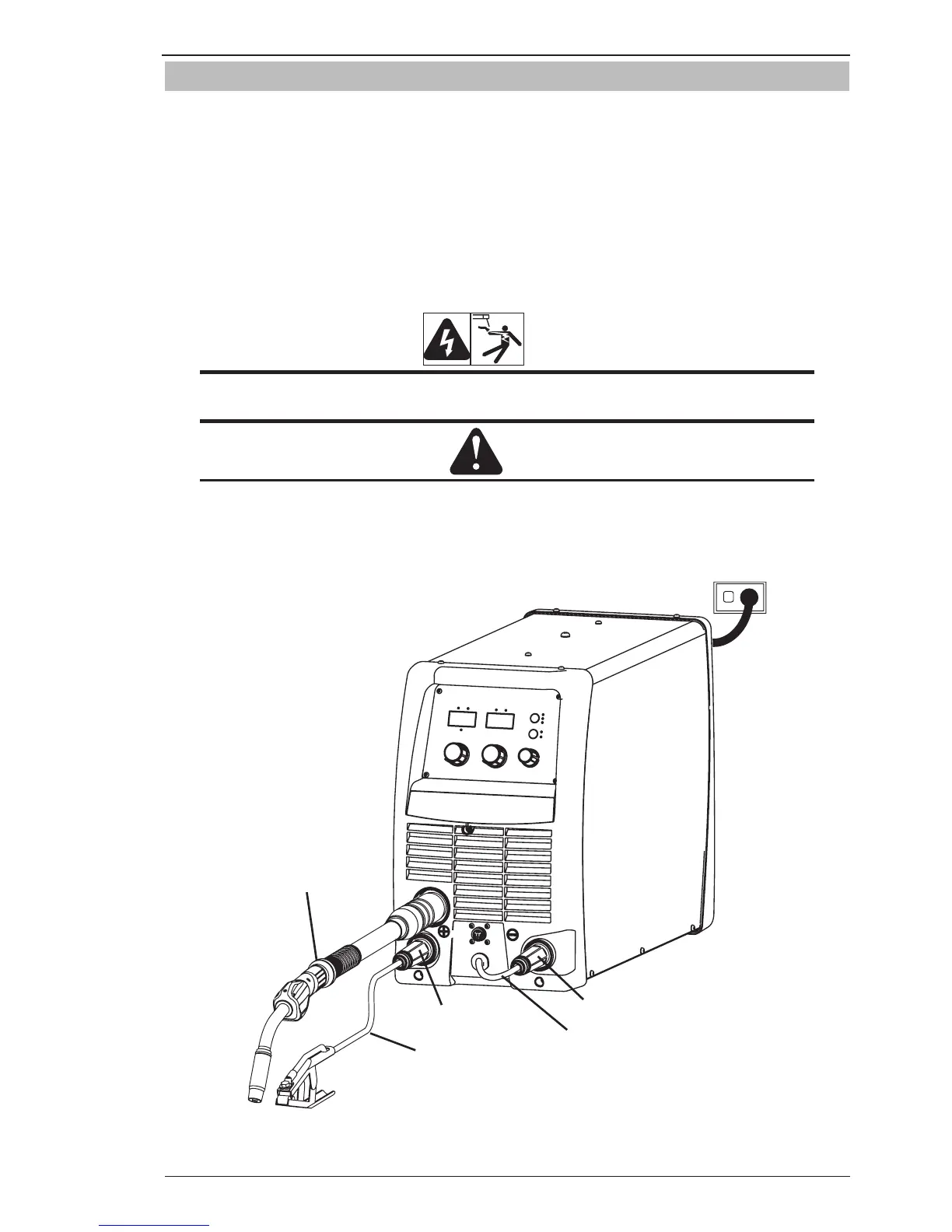 B. Connect the Mig Torch polarity lead to the negative welding terminal (-). If in doubt, consult the electrode