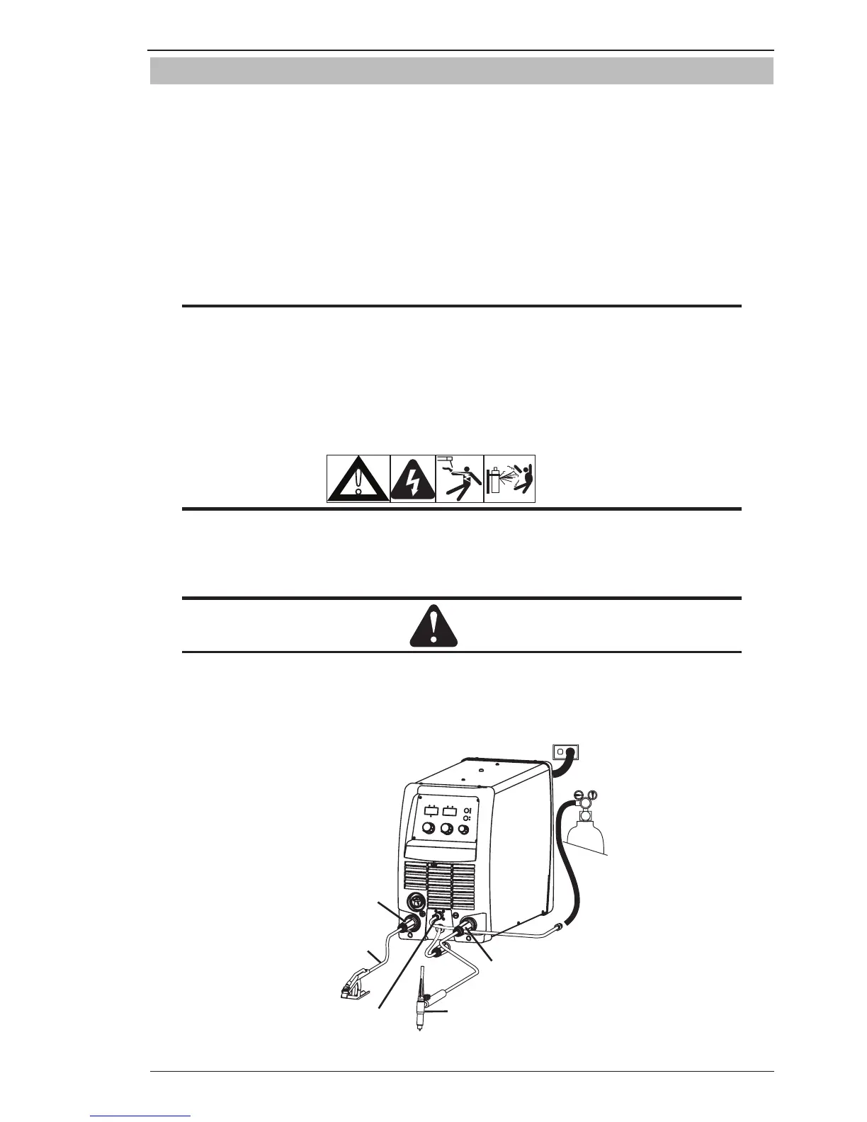 torch shielding gas hose is connected directly to the regulator/flowmeter. The power source is not fitted