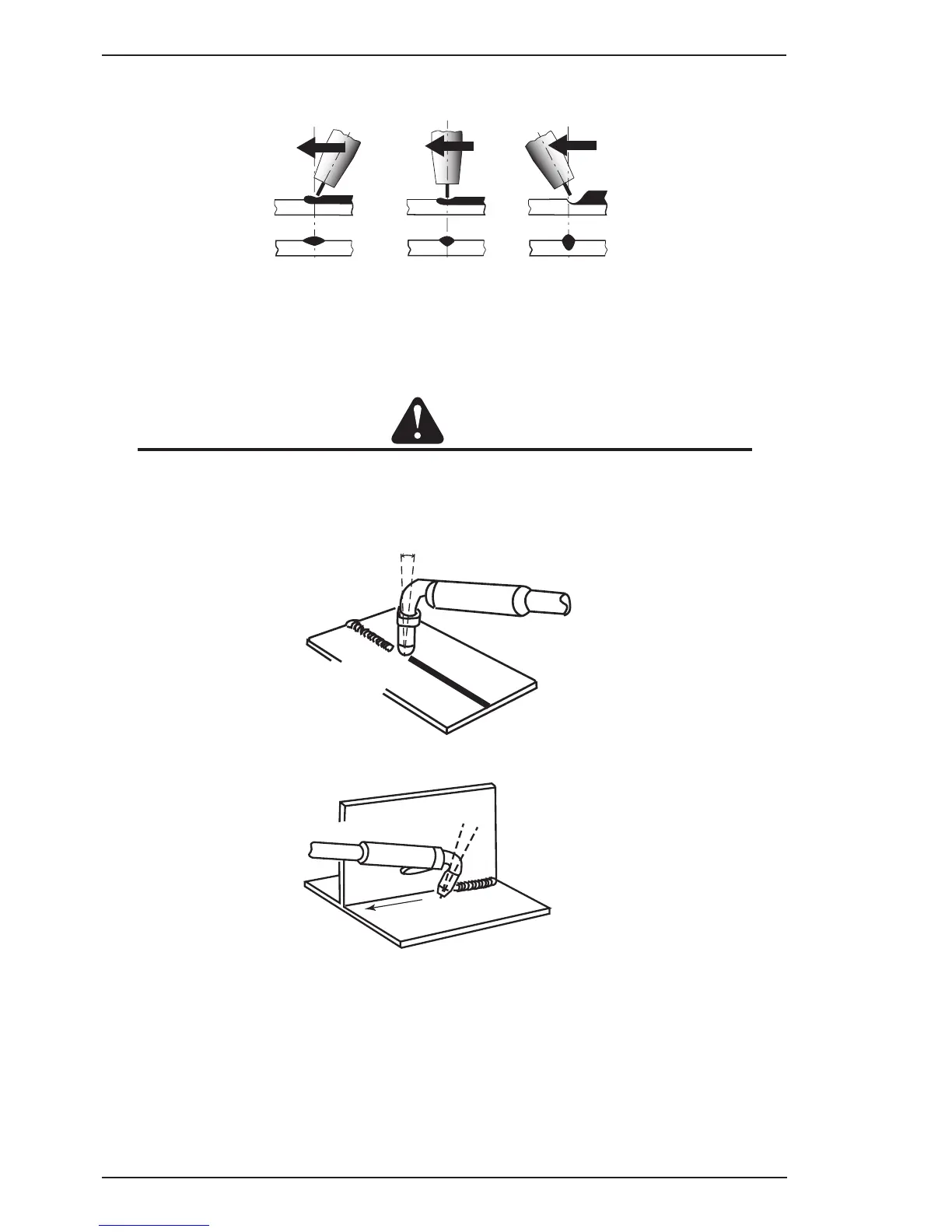 The welding gun should be held at an angle to the weld joint. (see Secondary Adjustment Variables below)