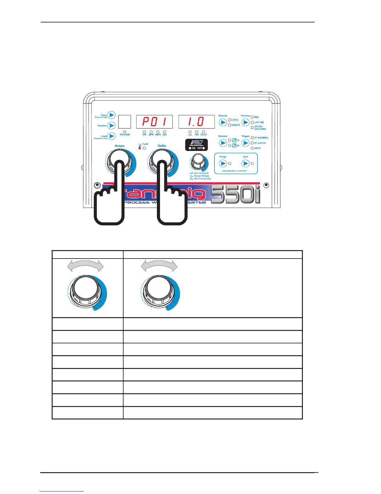 Once in the Advanced Features mode, turn the AMP control to select the Parameter, and turn the VOLTS