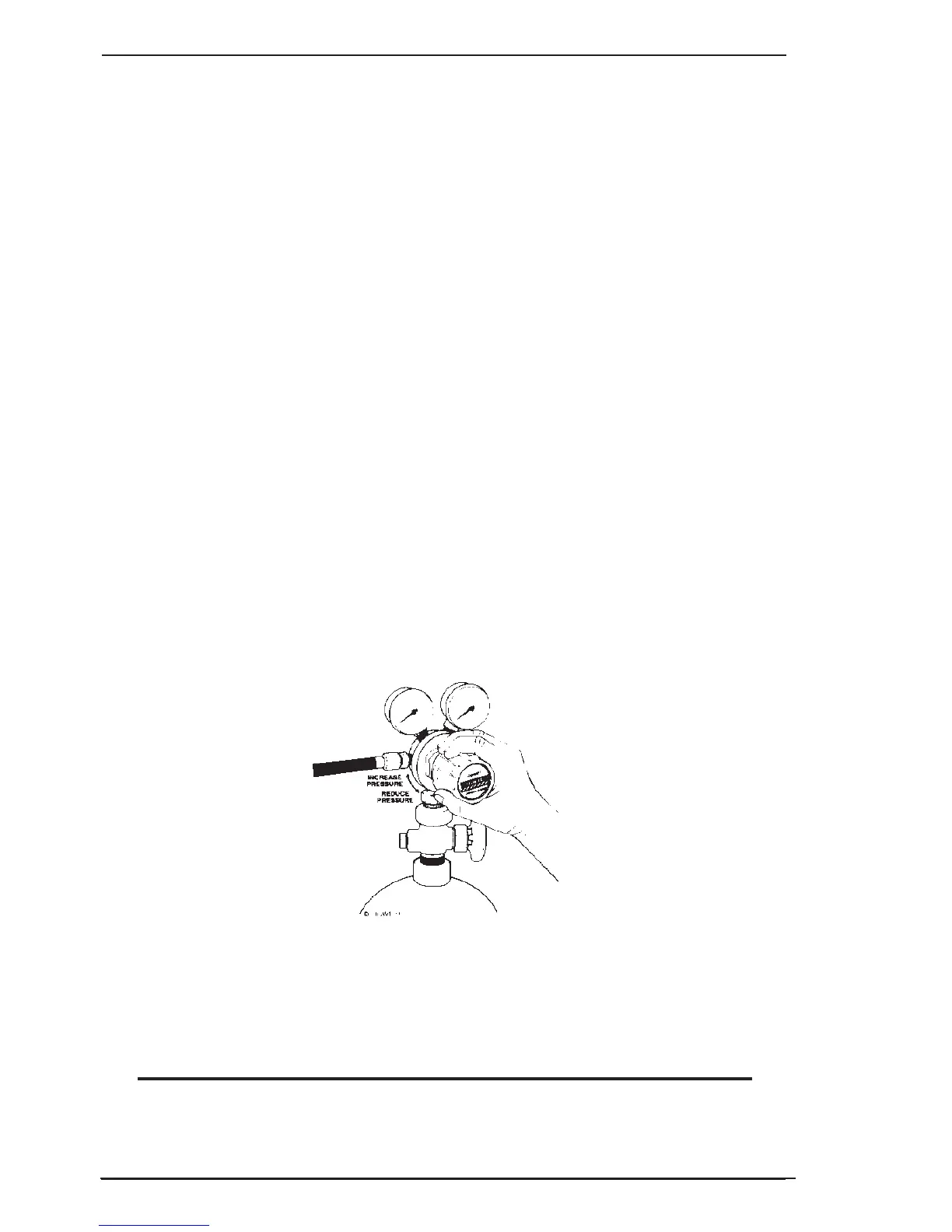 3. Purge air or other unwanted welding grade shielding gas from equipment connected to the regulator