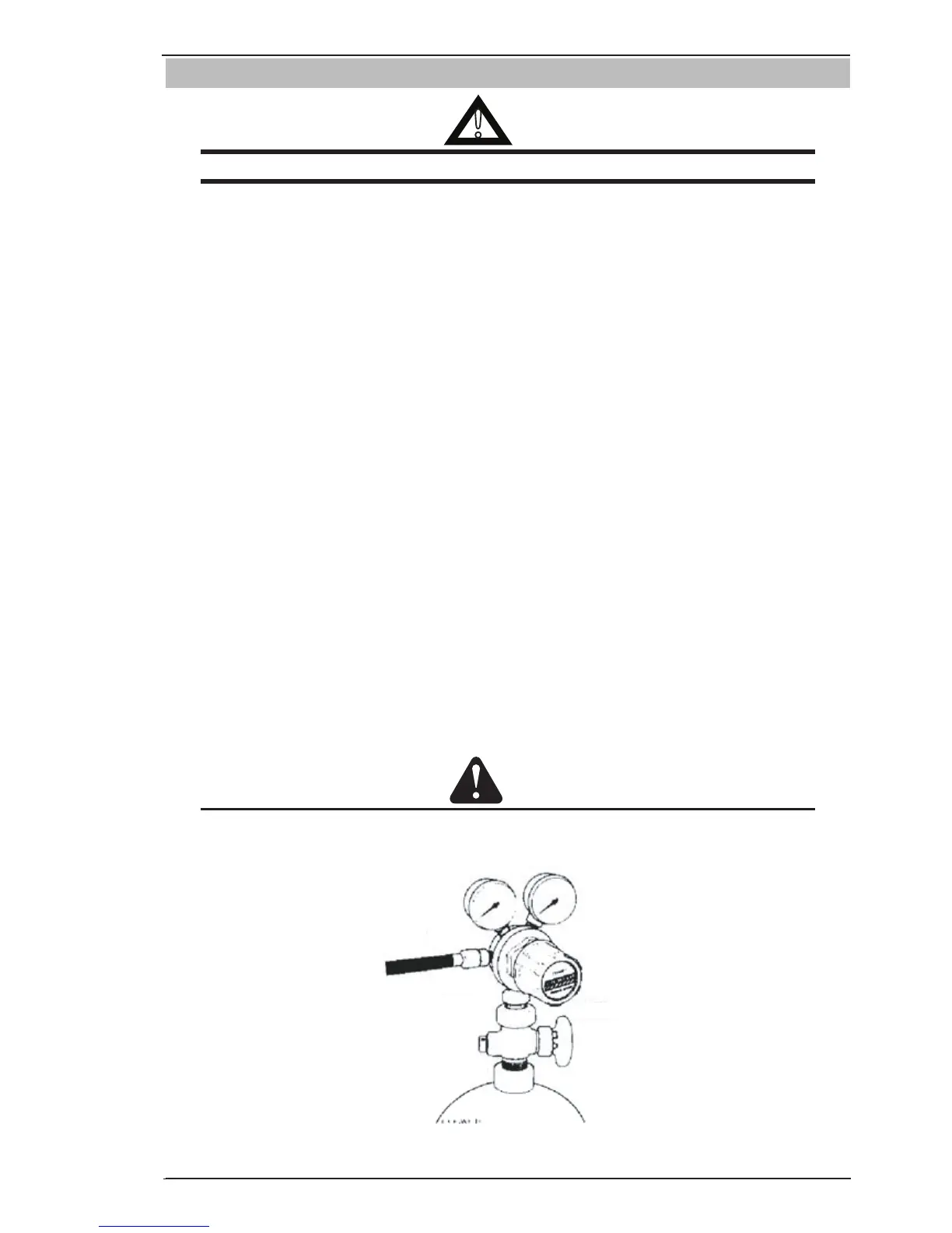 3. DO NOT remove the regulator from a cylinder without first closing the cylinder valve and releasing gas