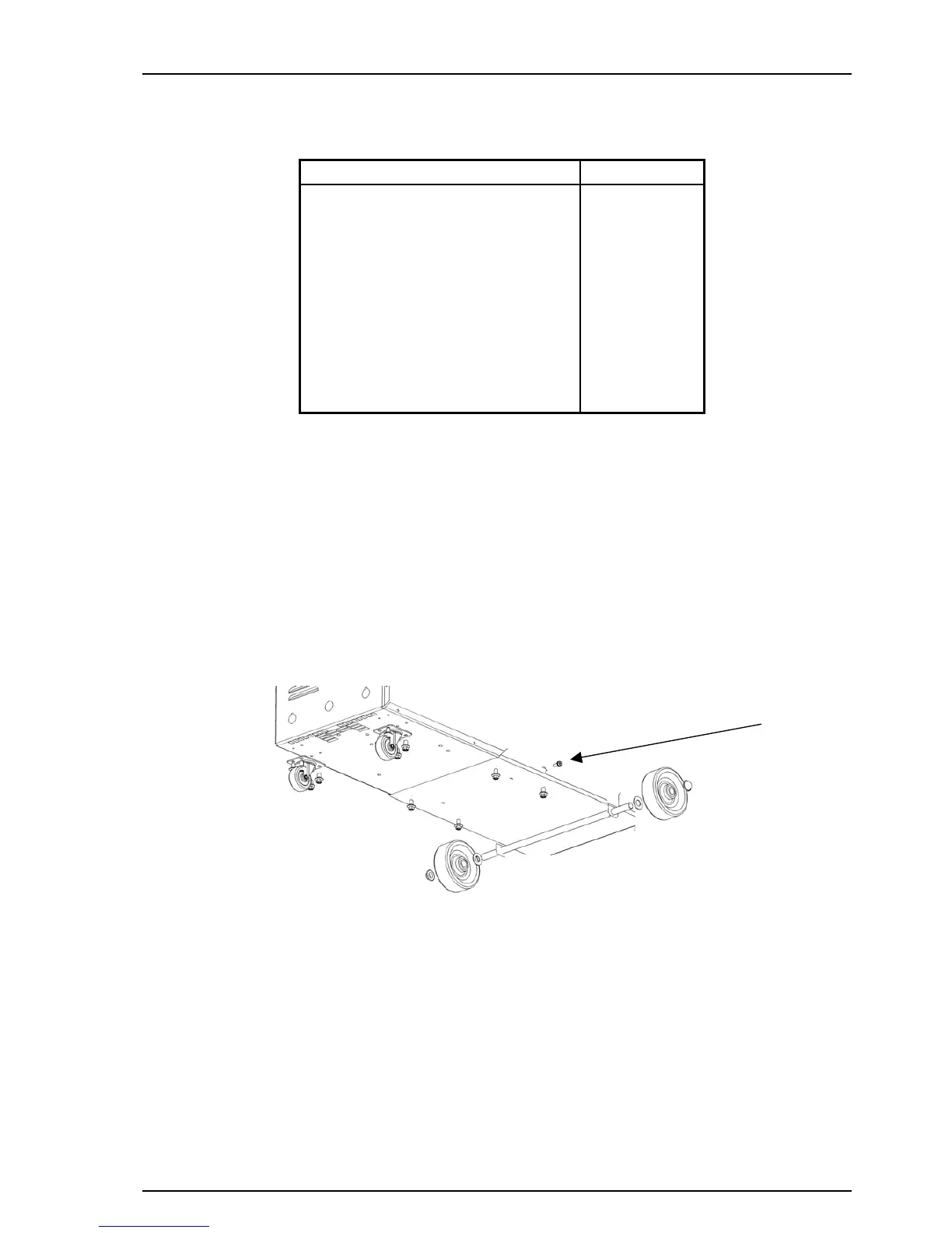 a) Install the two swivel castors in the position as shown in Figure 1 using M8 fasteners.