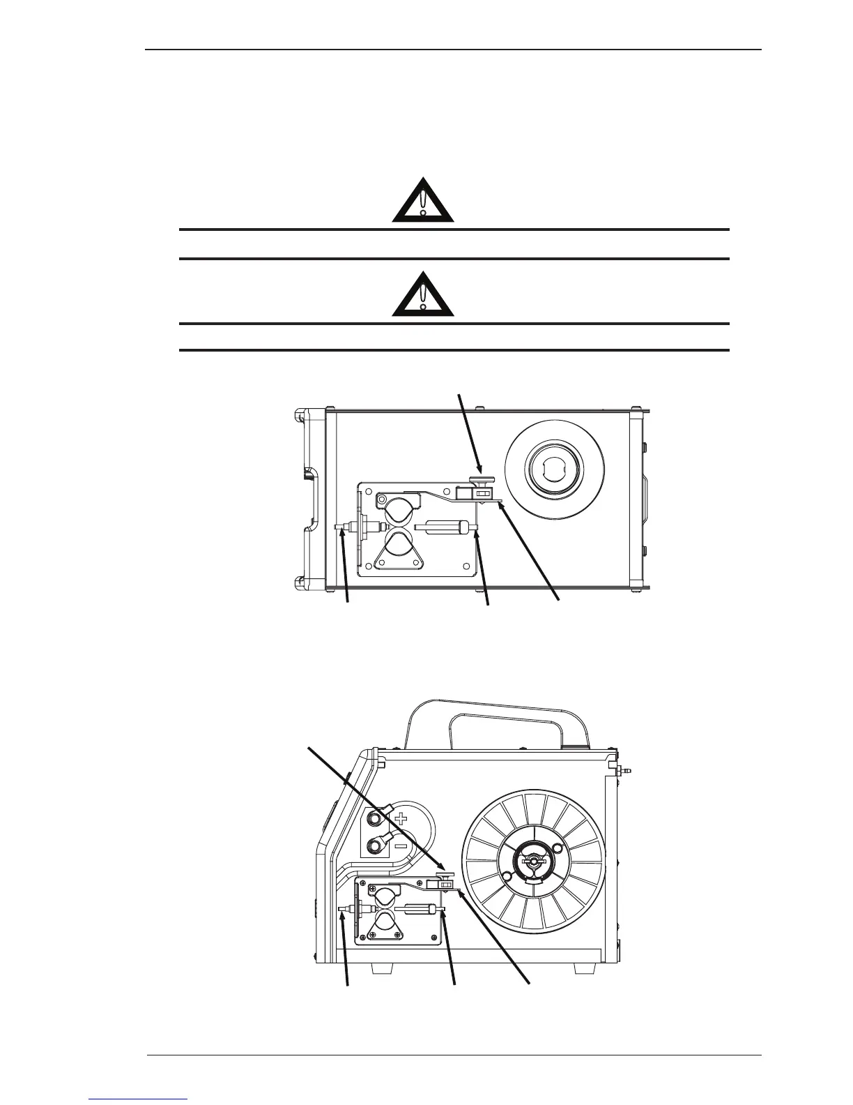 outlet guide and into the MIG torch. Lower the pressure arm and adjust the pressure accordingly. Plug the