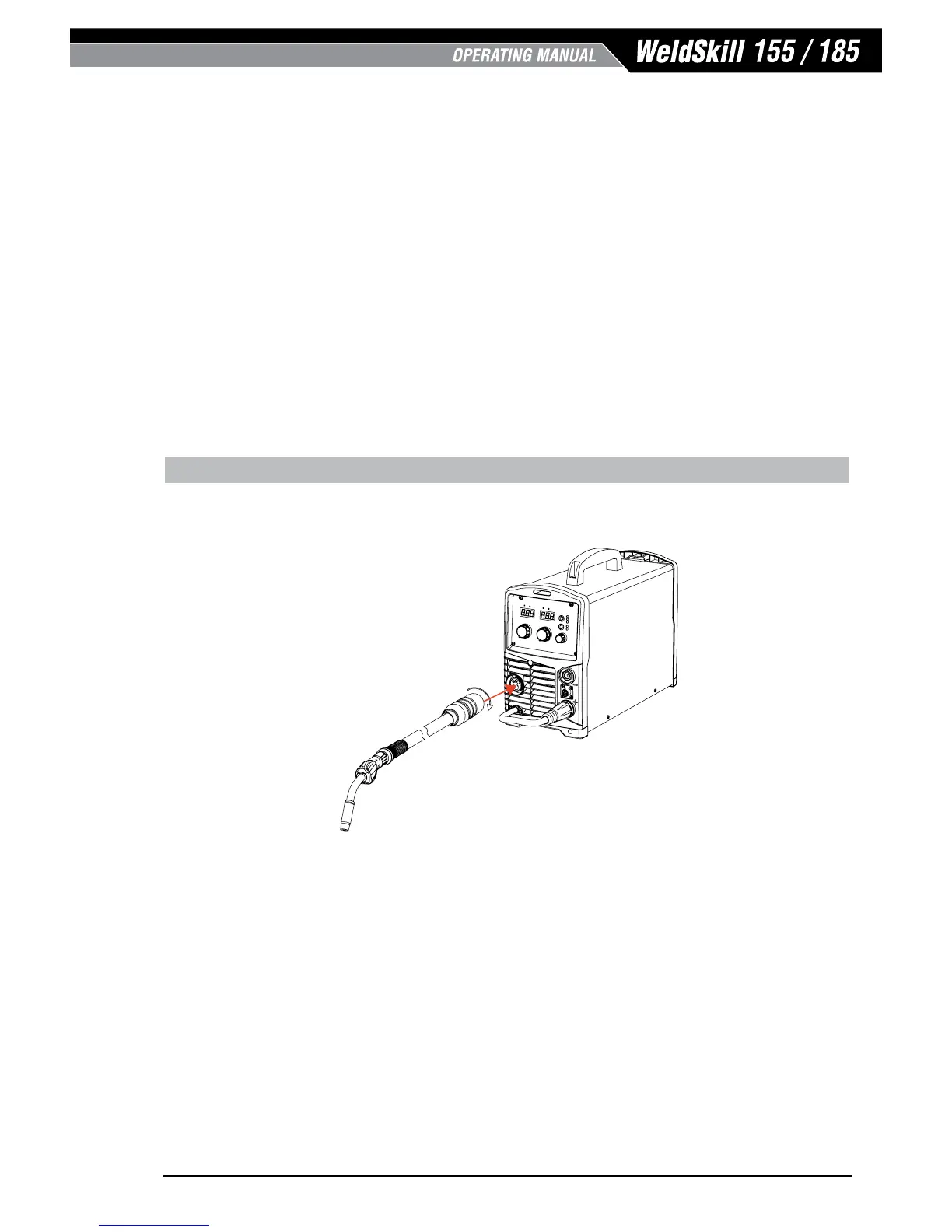 Fit the MIG Torch to the power source by pushing the MIG torch connector into the MIG torch adaptor and