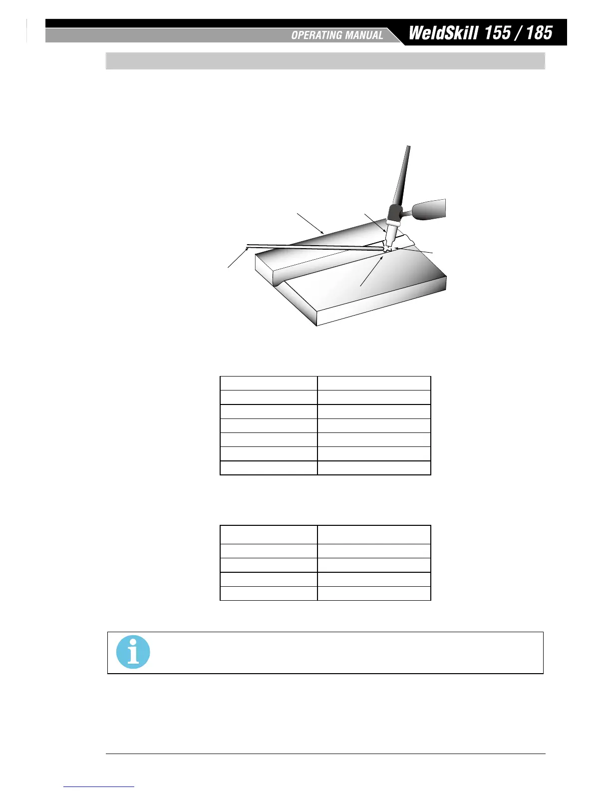 The operator should use the welding current range values as a guide only, then nally adjust the current setting to suit