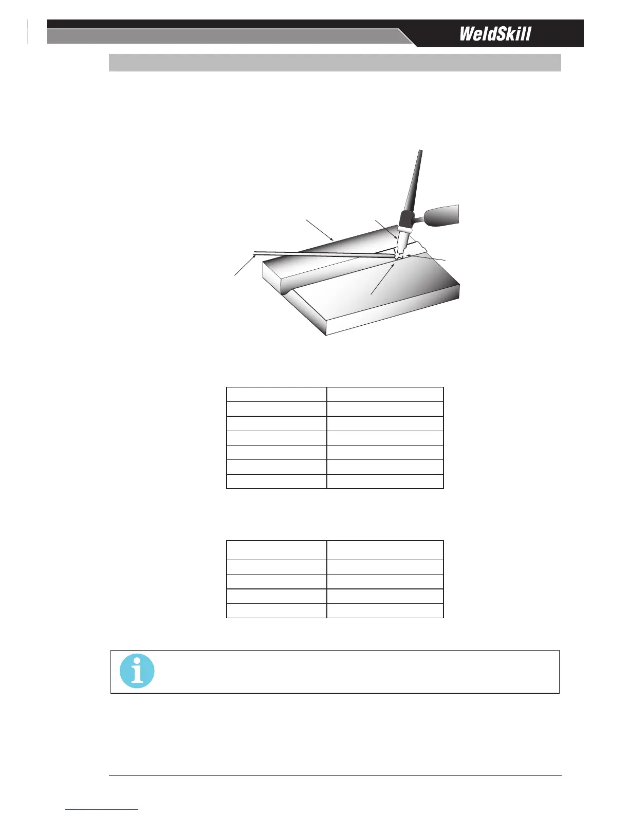 The operator should use the welding current range values as a guide only, then nally adjust the current setting to suit