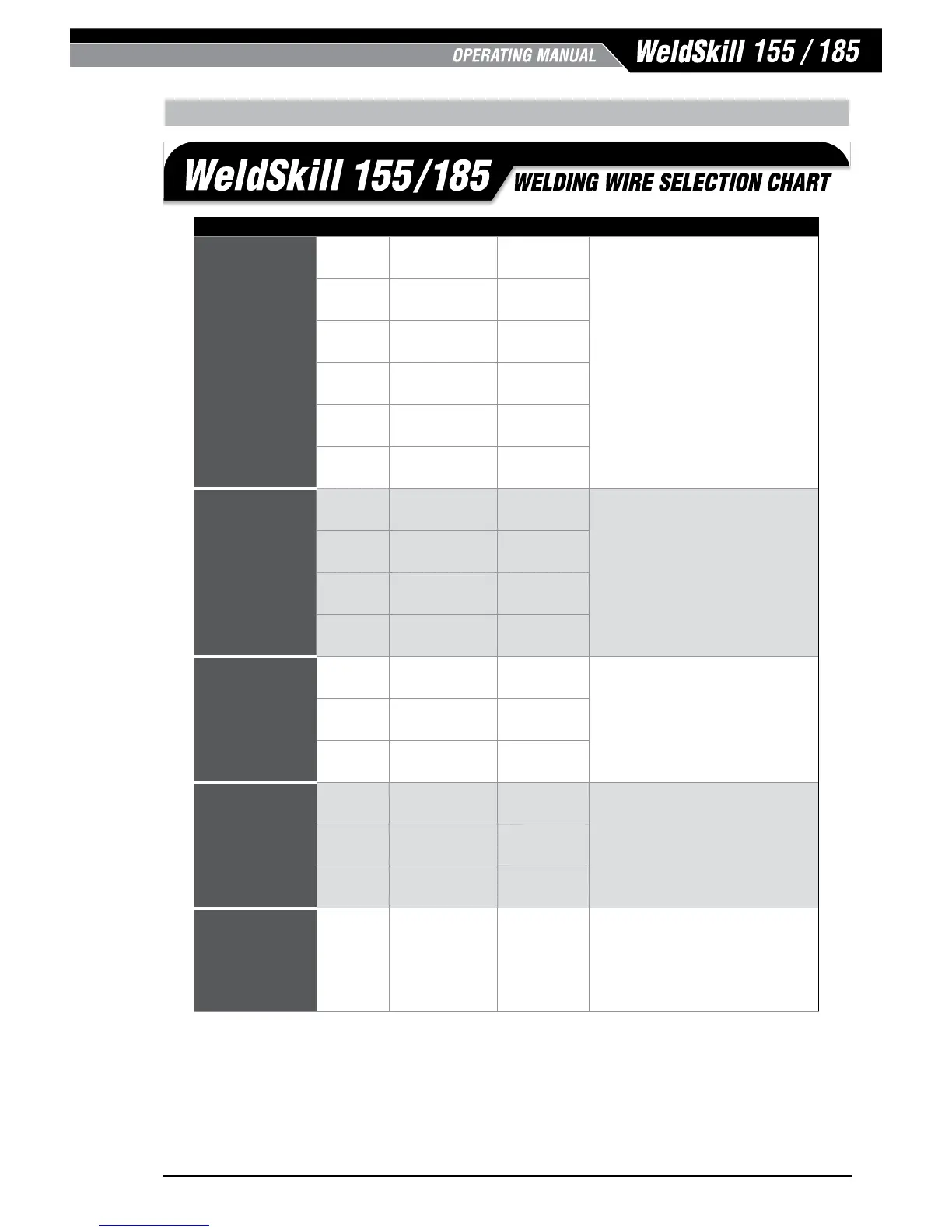 Table 5-1: Cigweld MIG Wire Selection Chart