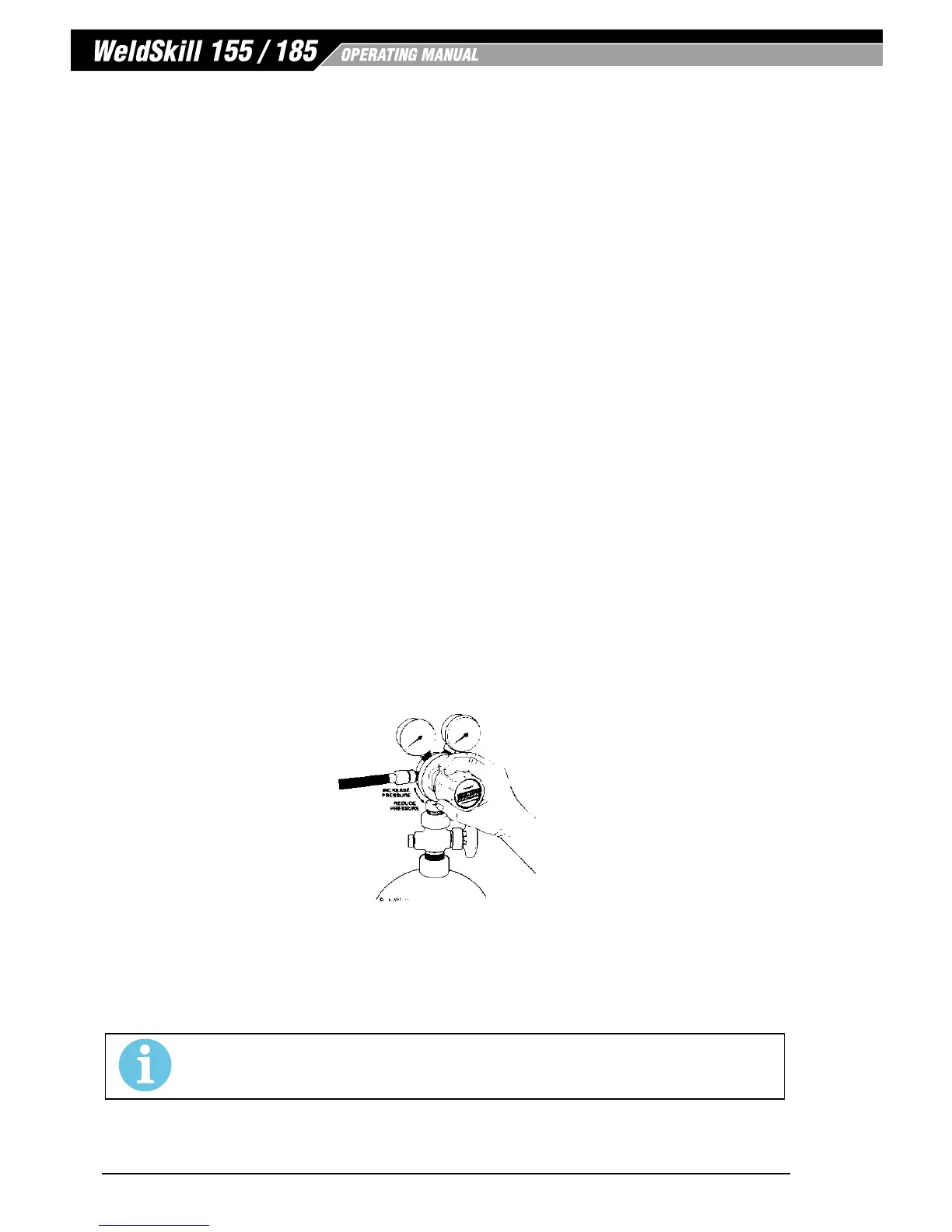 2. To reduce flow rate, allow the welding grade shielding gas to discharge from regulator/flowmeter by
