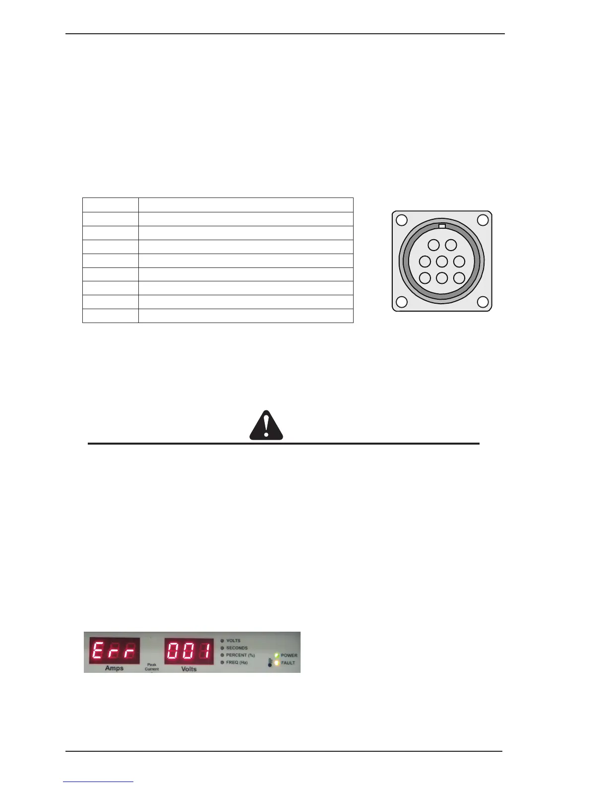 The Fault Indicator will illuminate in conjunction with an “Err 001” displayed on the ammeter and voltmeter