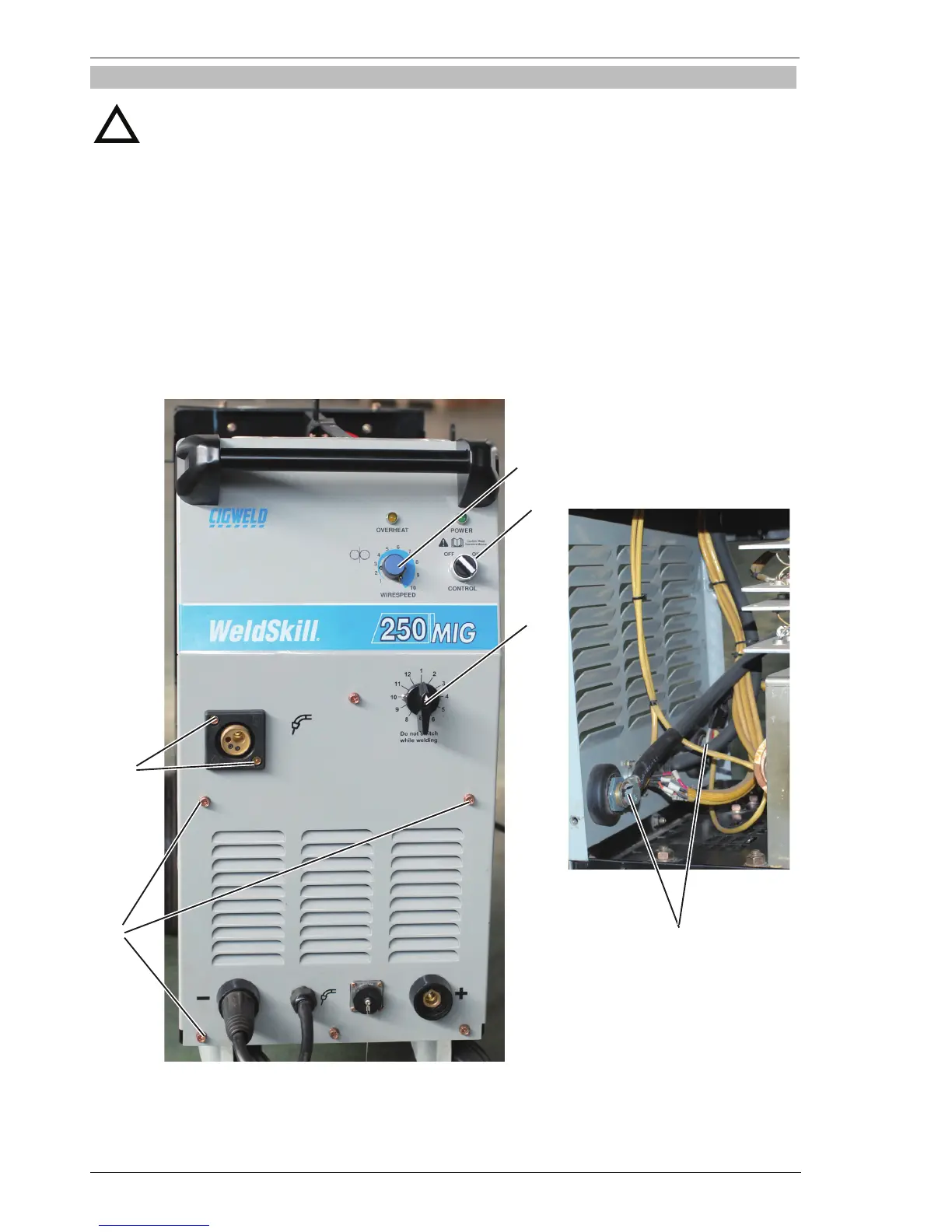4. Mig torch adaptor, remove adaptor cover by loosening the set screw.