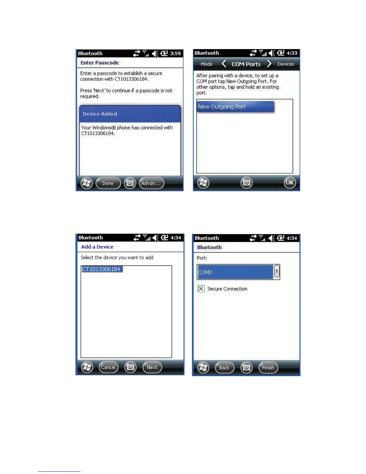7. Choose port number for added device. [COM0] is chosen here.