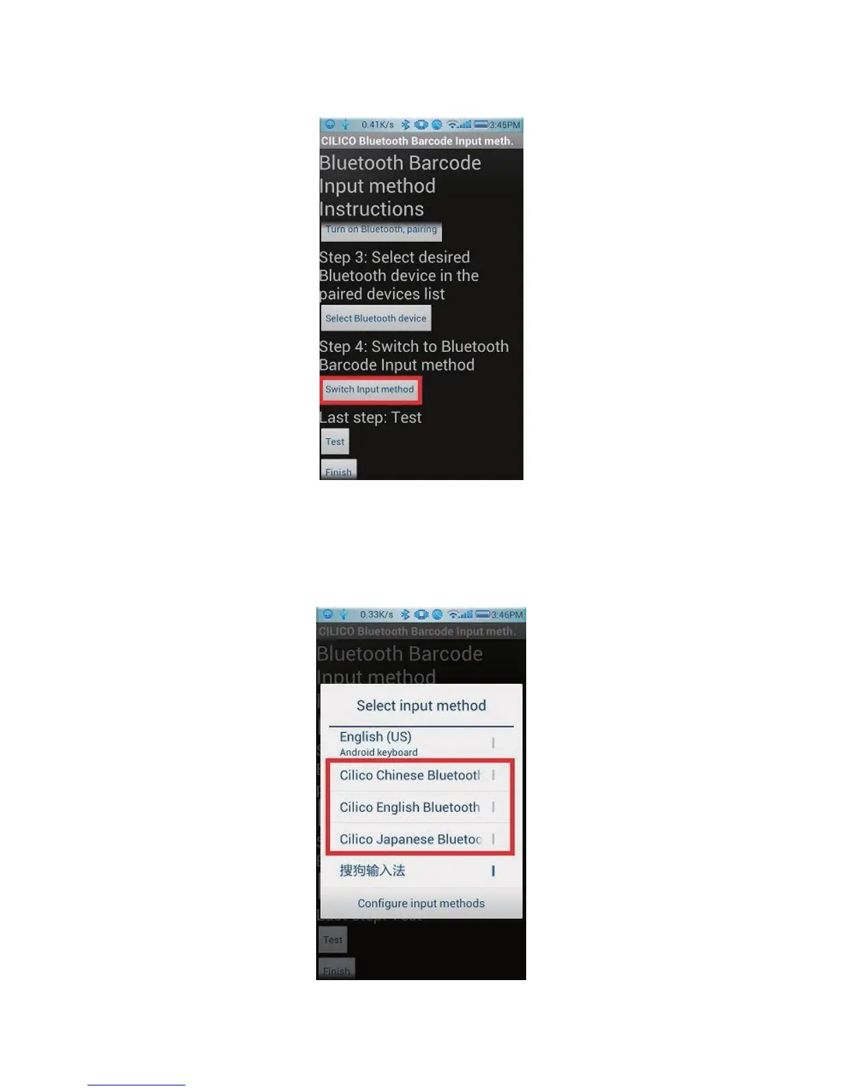 Select Cilico Bluetooth Input method (support Chinese,