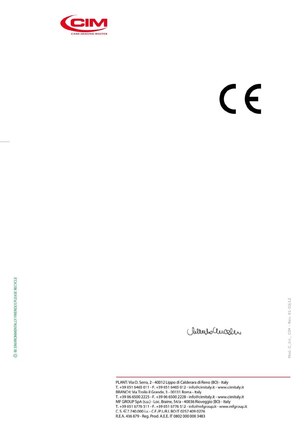The manufacturer MF Group Srl ‐ Via Serra, 2 ‐ 40012 Calderara di Reno ‐ Bologna ‐ Italy,