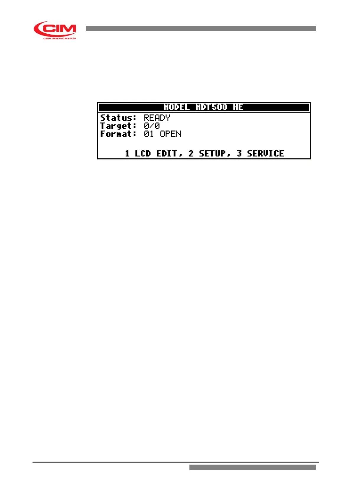 When the embosser is in READY status, the bottom part of the display shows "MAIN MENU", thus