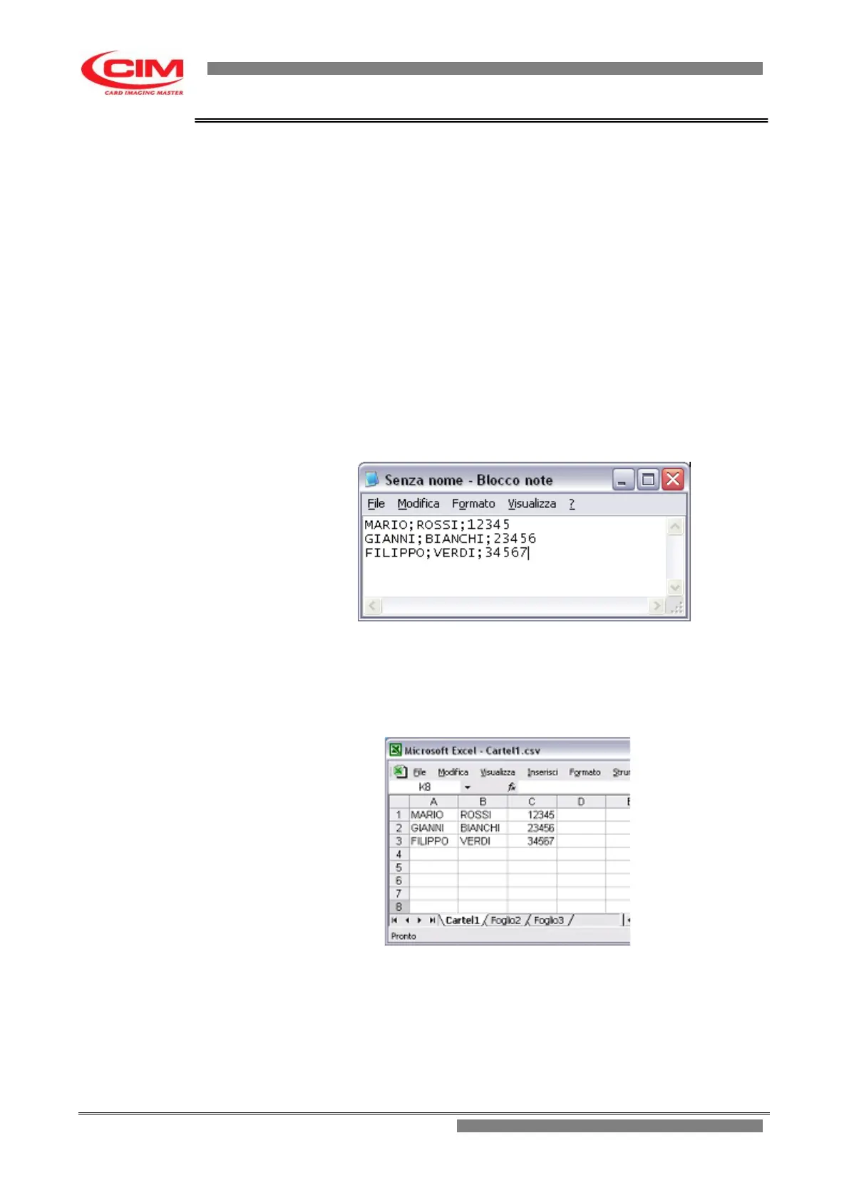 To create a .csv file with Notepad enter/edit the data as shown in the