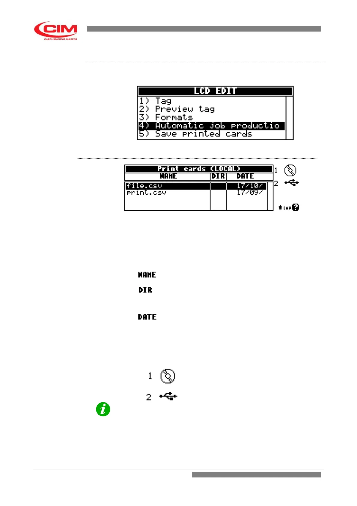 From the “LCD EDIT” menu you can access the "Automatic Job Production