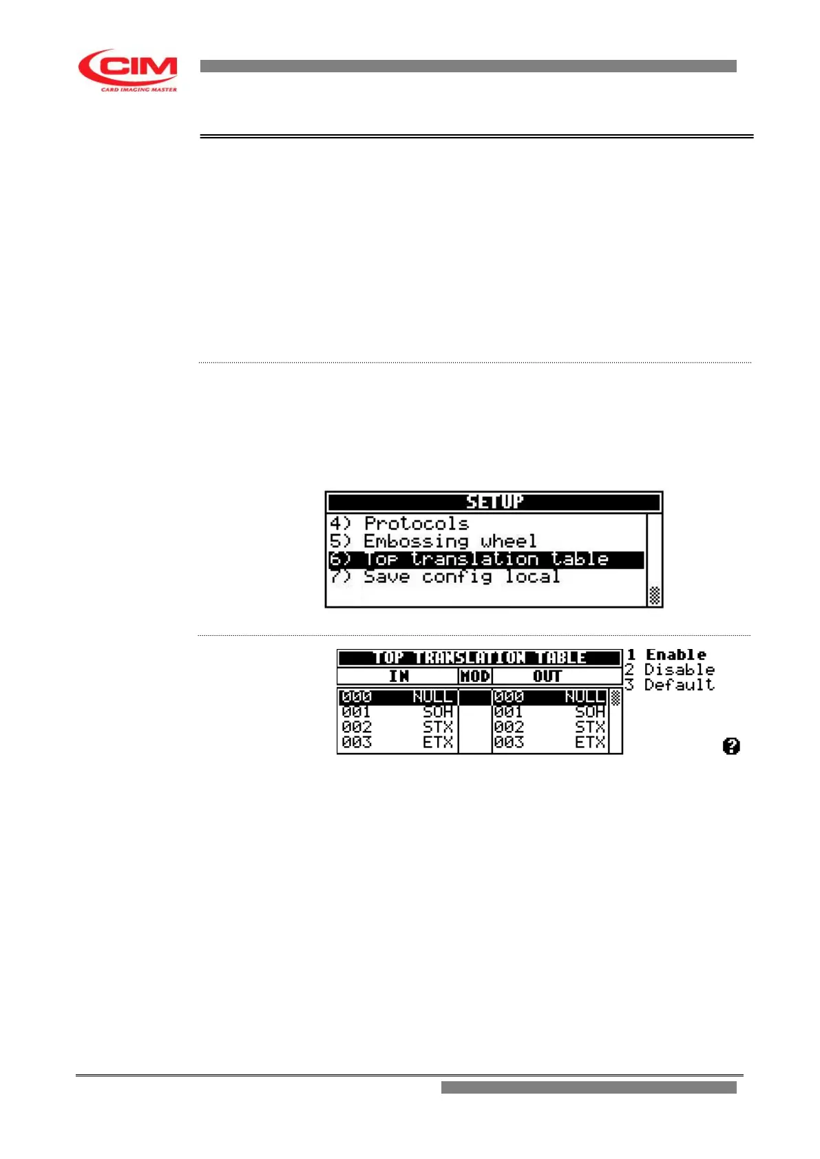 From the “SETUP” menu you can access the “Top translation table”