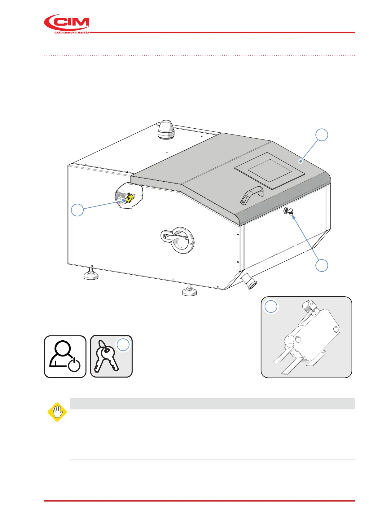 The guard (1) is tted with a lock, with safety key (2), and a micro switch (3) that stops processing operations when