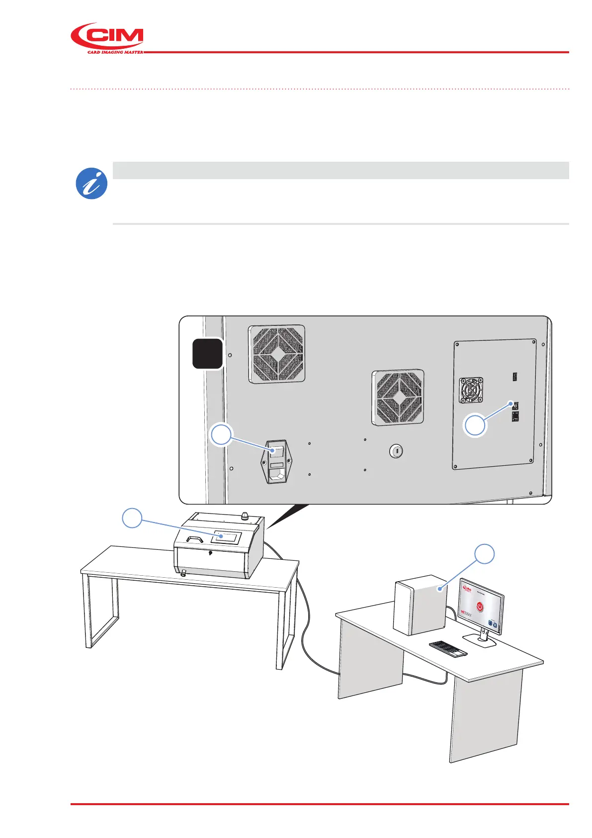 To power up the machine, use the power on button (4) on the back.