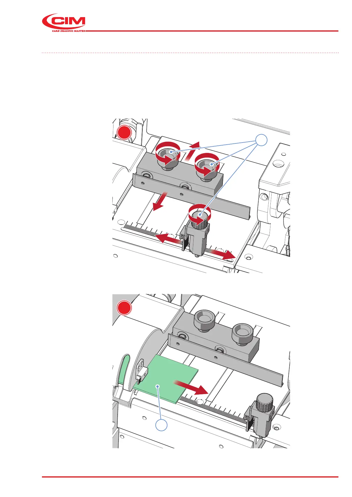 The metal tag loading hopper is located on the left side of the embosser and can be adjusted to the size of the tags.
