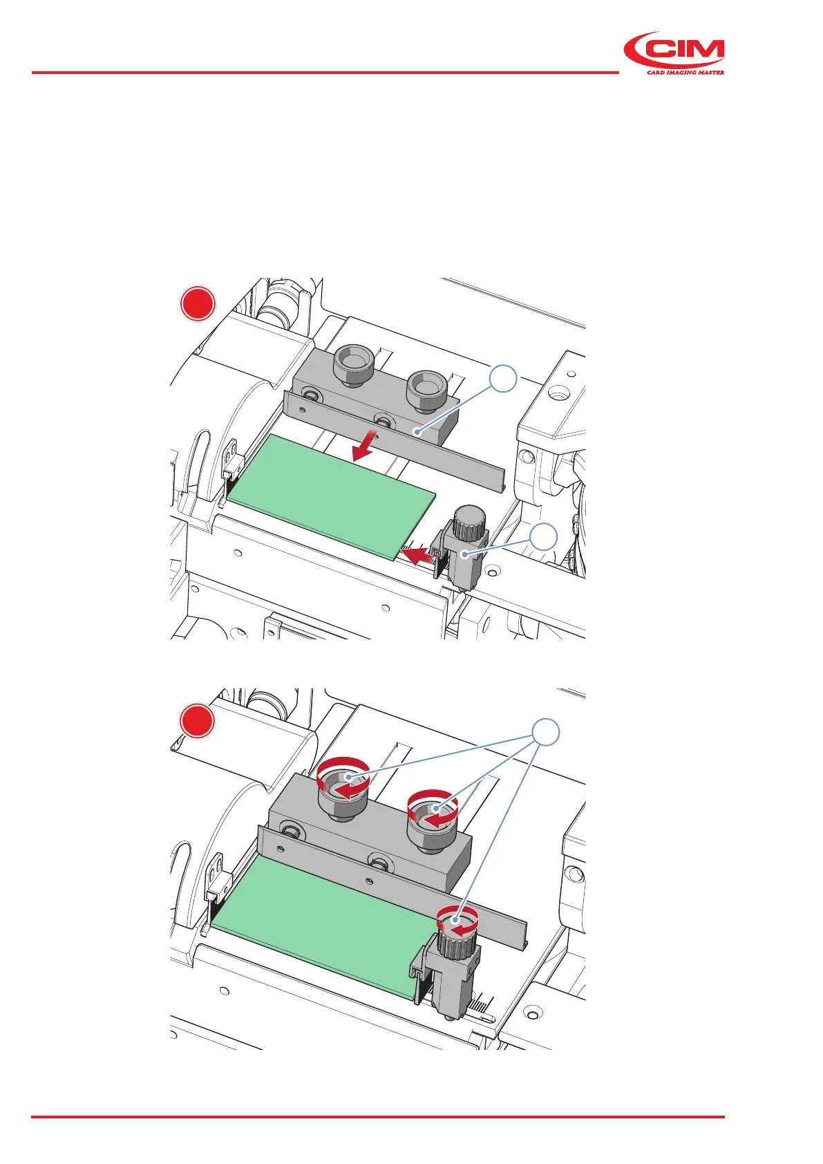 3) Move (C) the supports (3) and (4) close to the tag to be embossed.