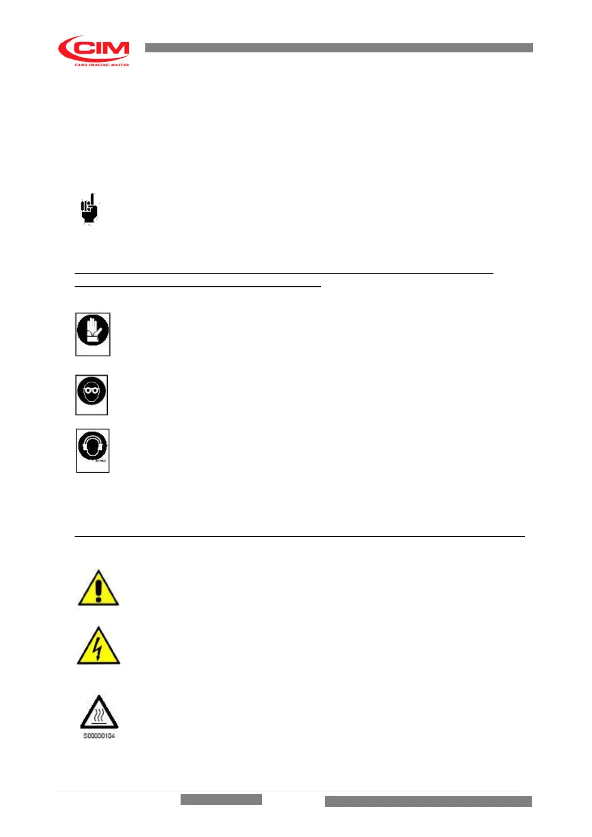 The same warning symbols are also placed on the machine to indicate dangerous areas.