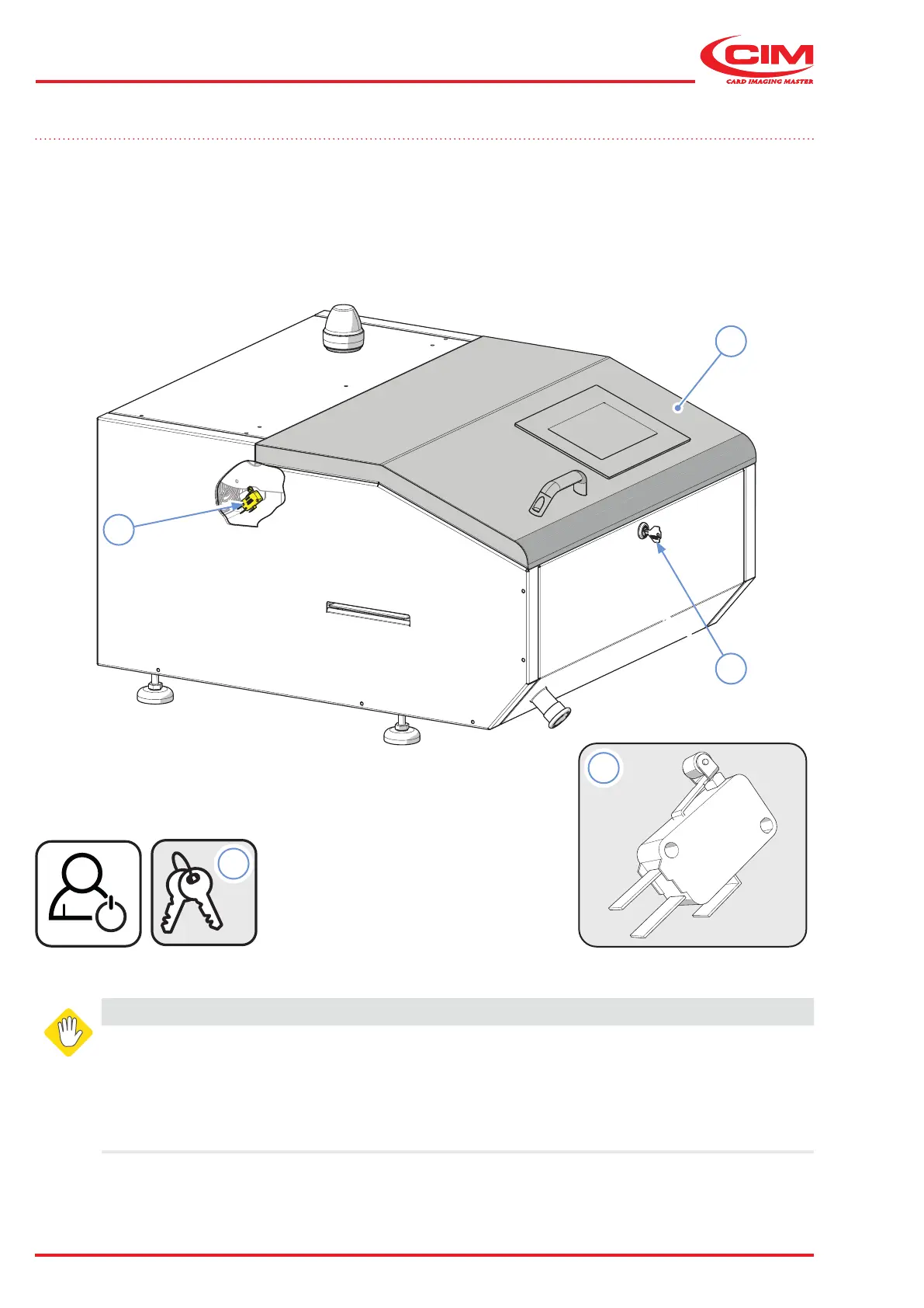 The guard (1) is tted with a lock, with safety key (2), and a micro switch (3) that stops processing operations when
