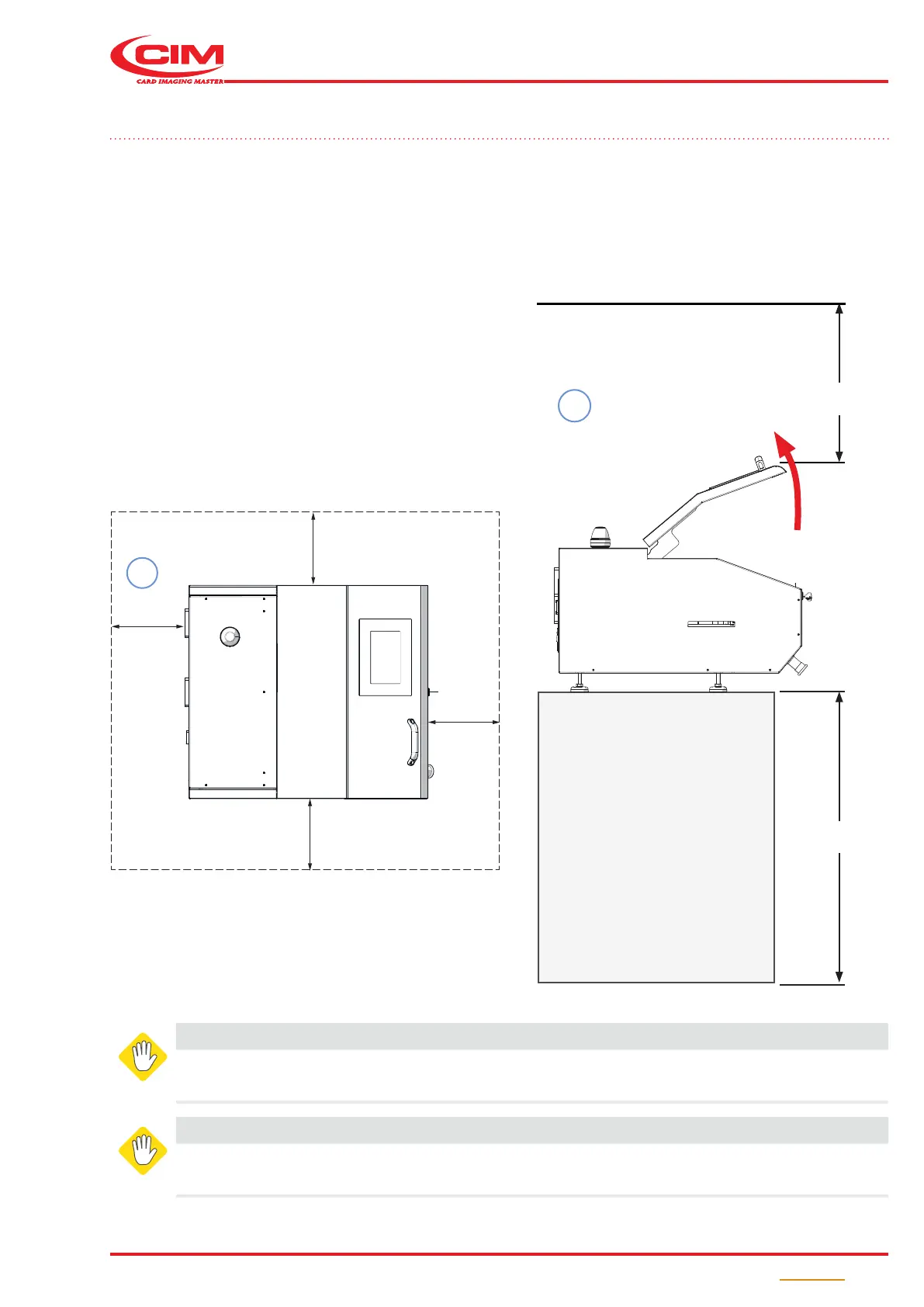 A space of at least 0.4 m is required in order for the upper guard to be opened (B).