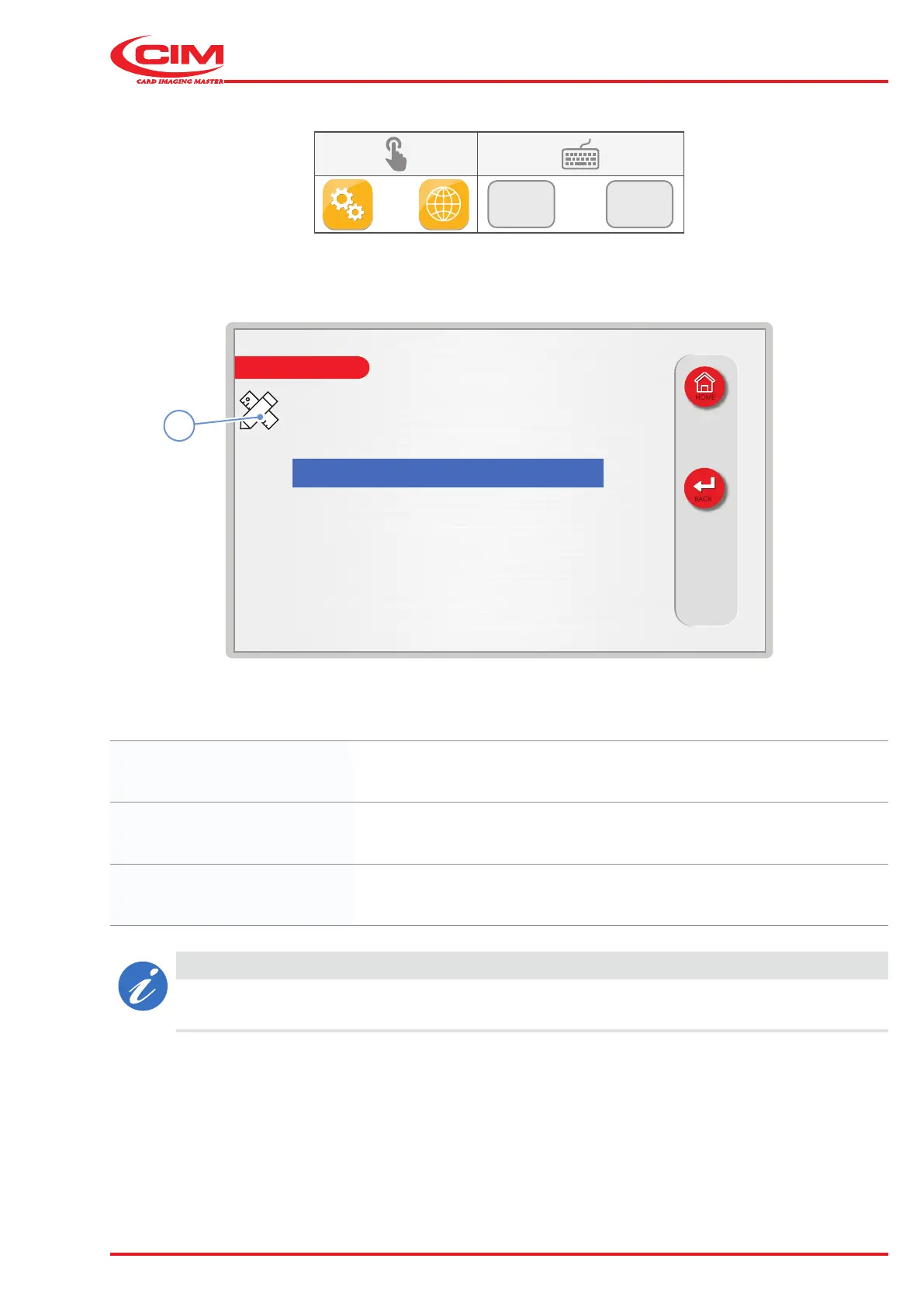 Settings: Used to set up the machine's network conguration.