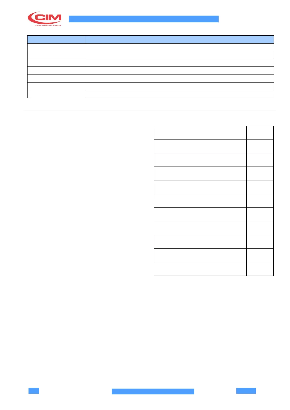 CIM PRO COMBI 1000 - A.17 MECHANICAL SETUP DATA