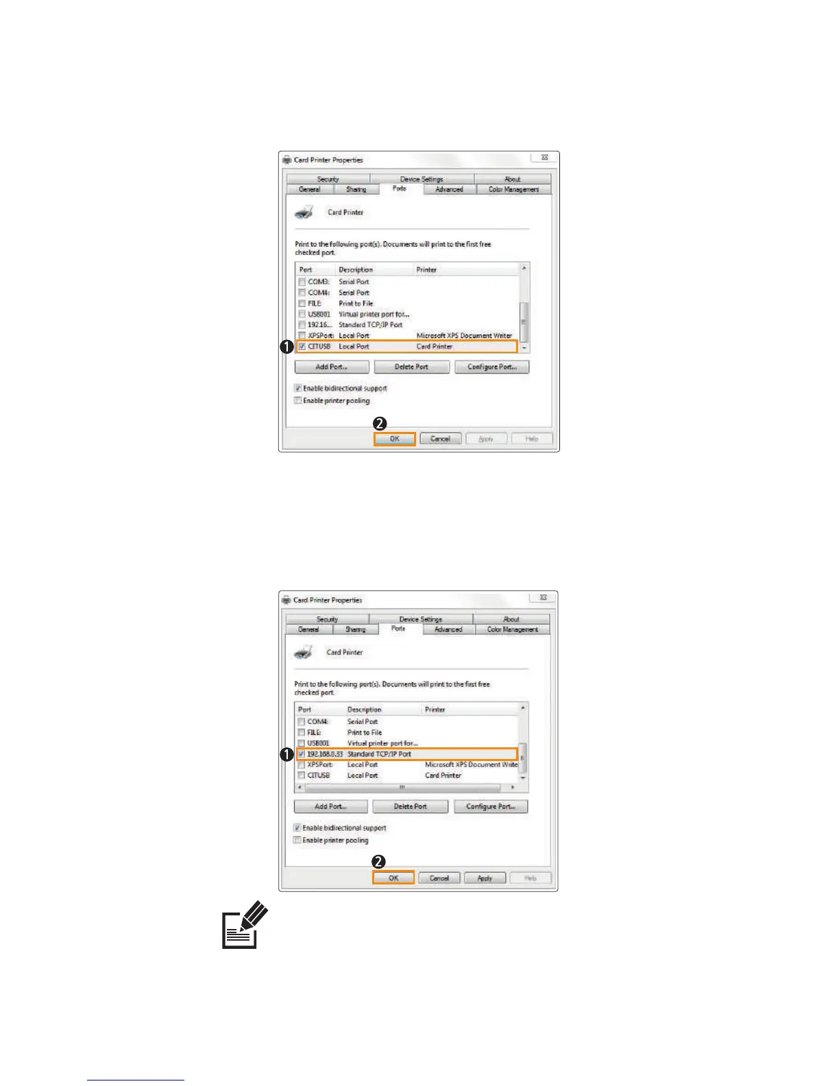 4. Select the port you want to use and click “OK”.