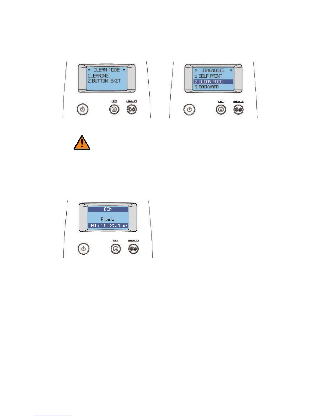 cleaning card. Then, press both the “EJECT” and “RIBBON SET” buttons