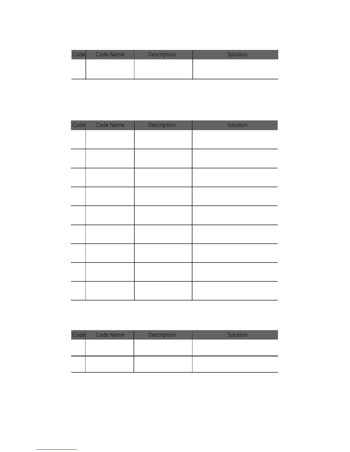 Code Code Name Description Solution