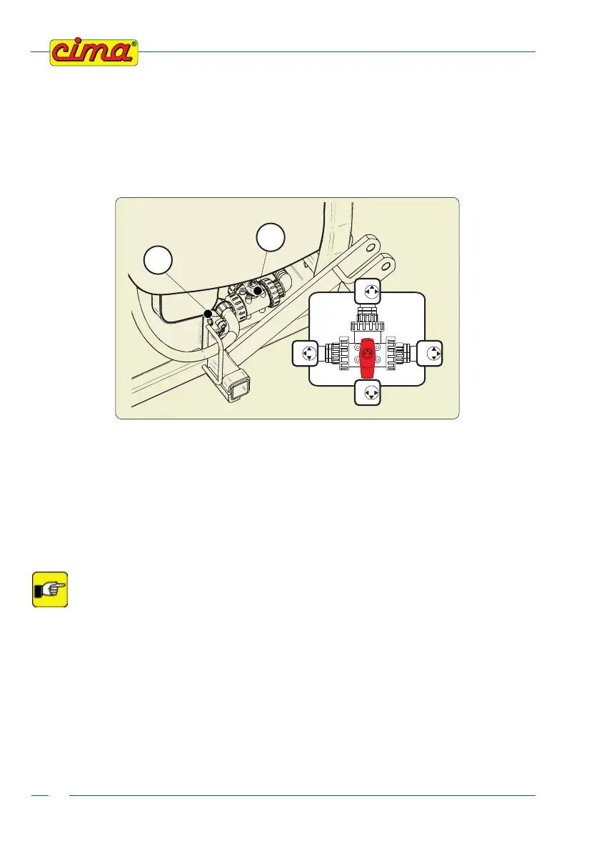 In this position, the tank (P1) is emptied. The union with the centrifugal pump is closed. In order