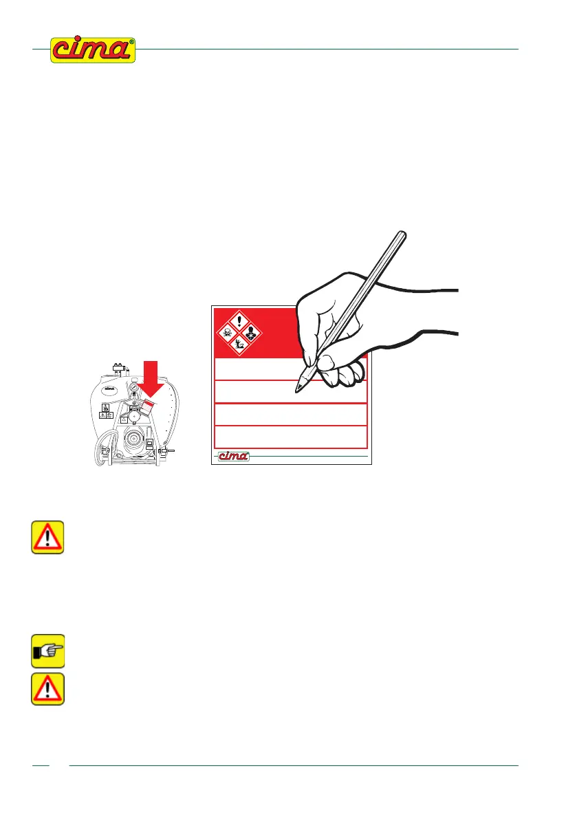and pour it in the tank before carrying out the filling – place the empty packaging in the specific