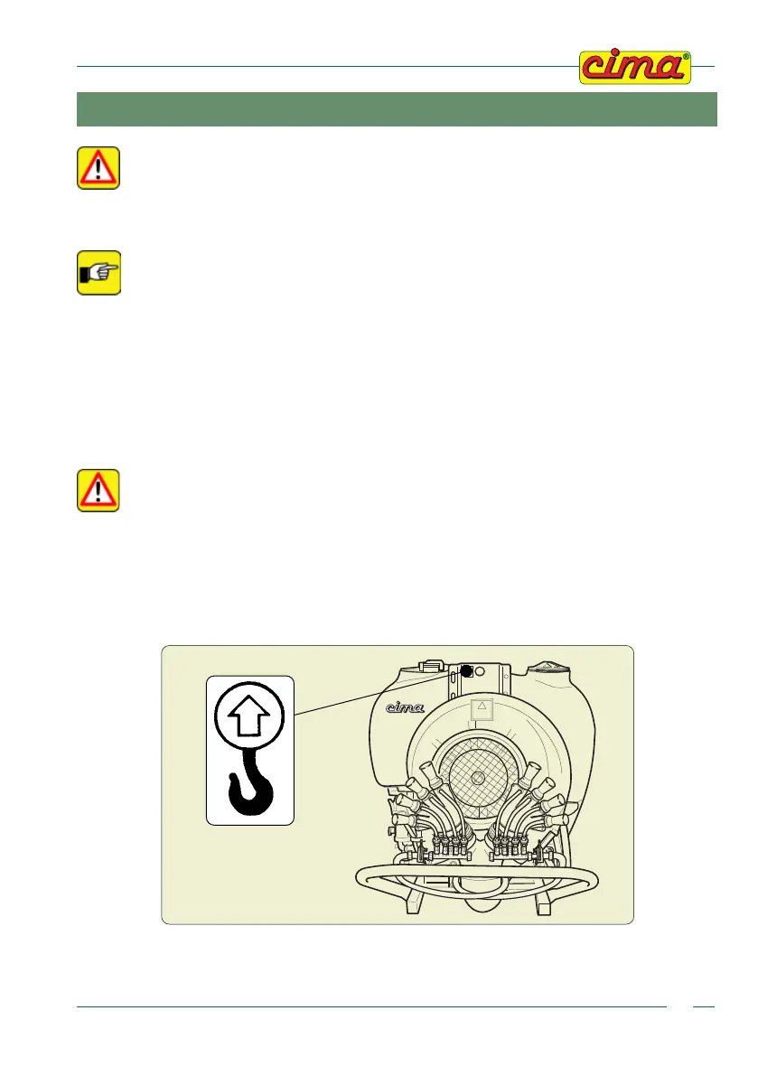 1. Check that the cables or chains used for the lifting are adequate for the weight to be lifted (machine
