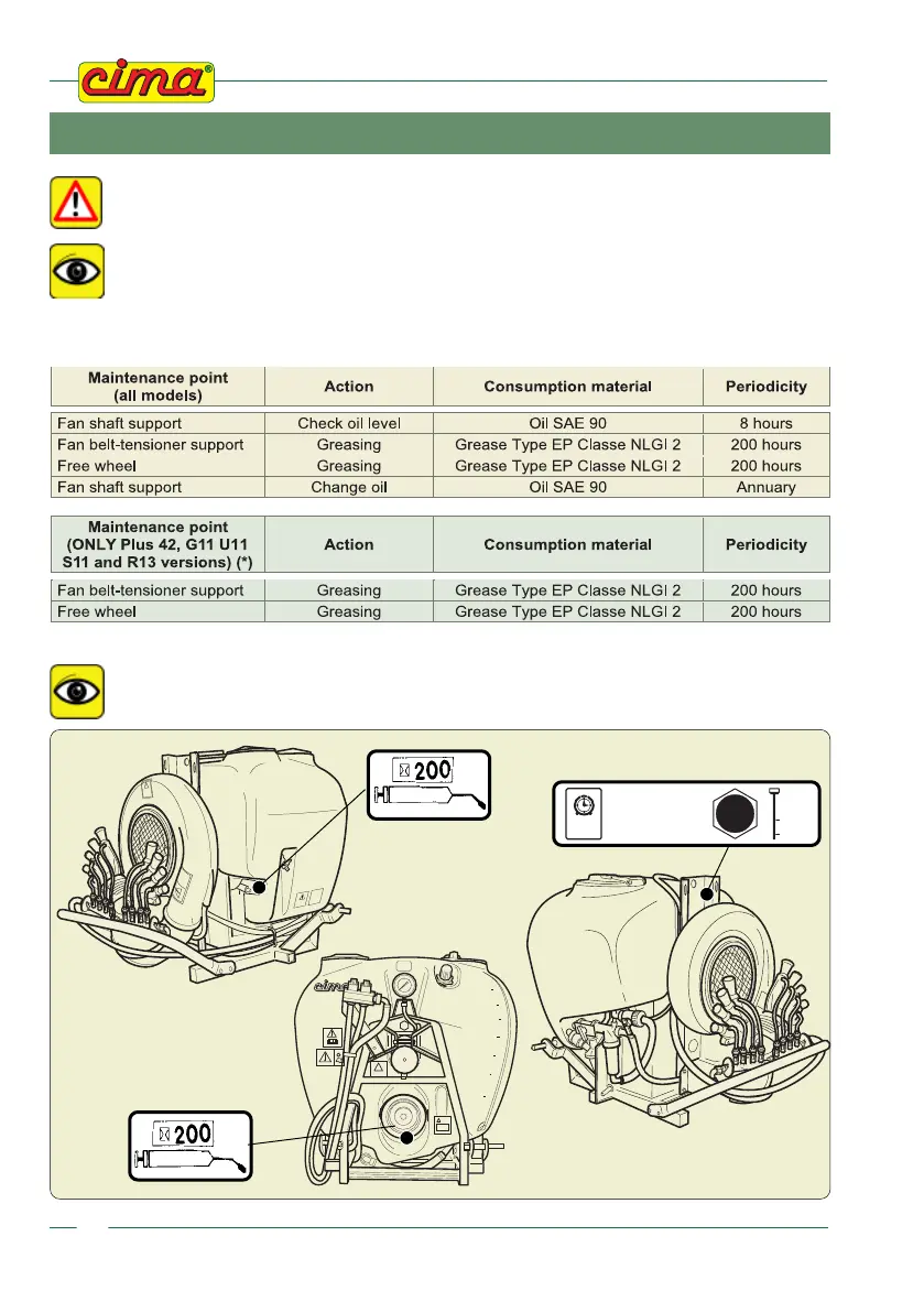 Carefully clean the greasing nipples and the oil filler in order to avoid that, during
