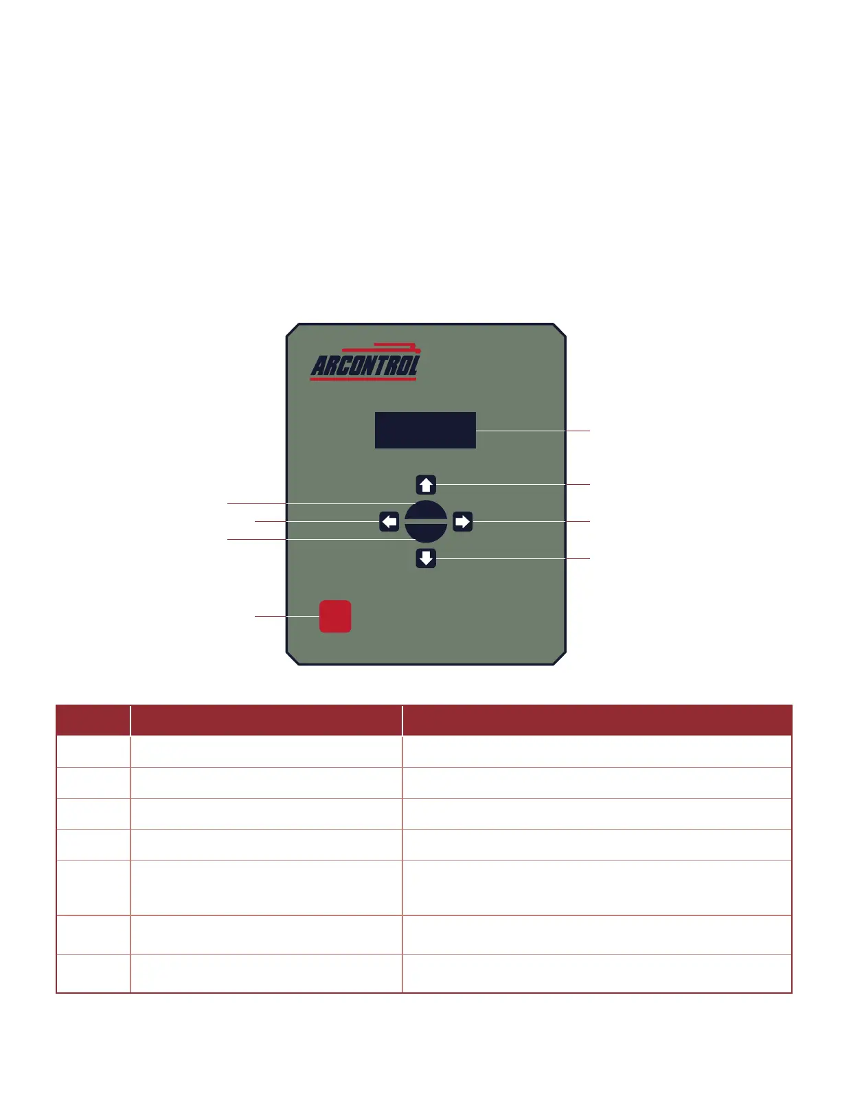 The system user interface (Image 2.1.1) consists of a text display and seven keys (Table 2.1.1) that are used for menu