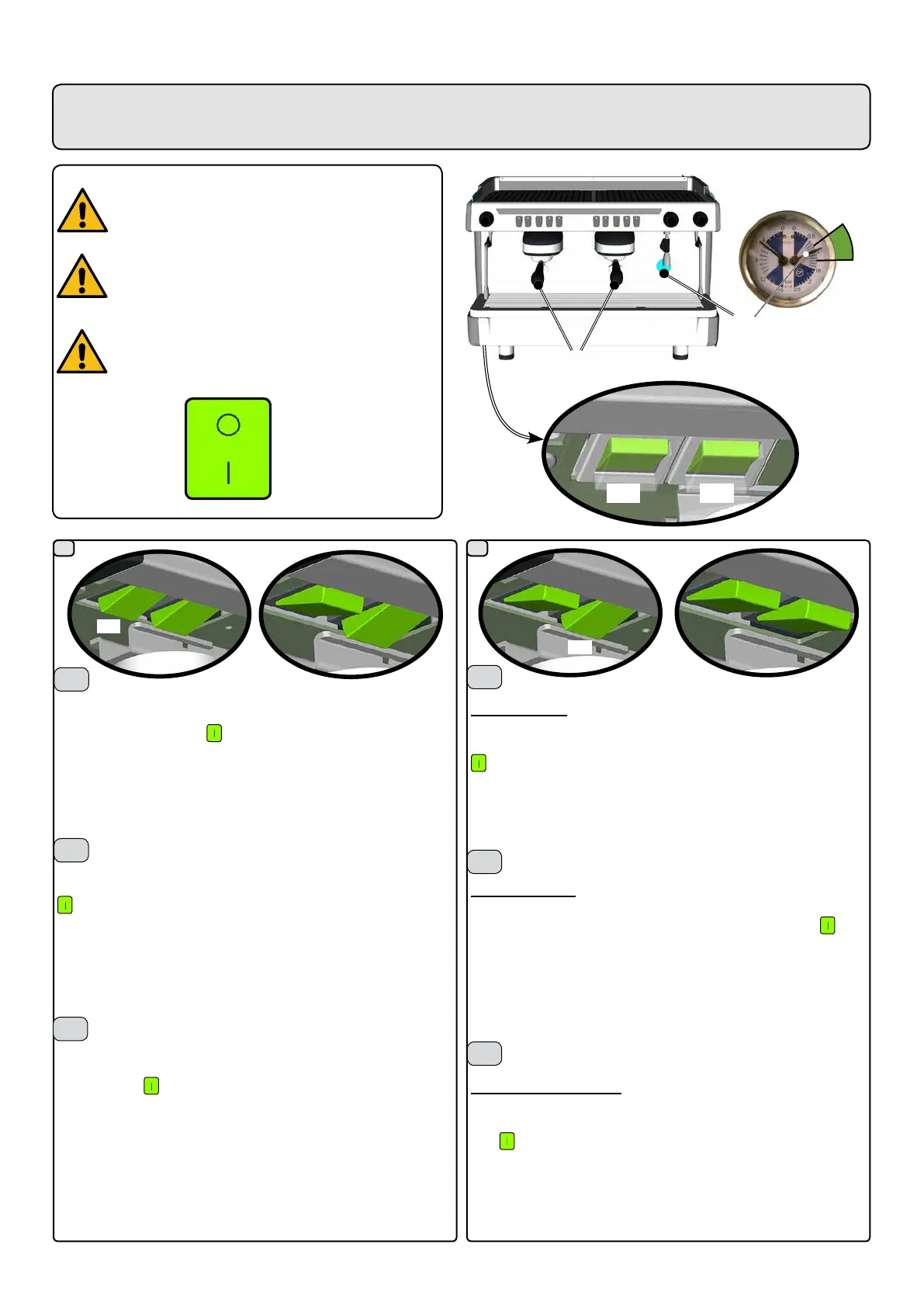 Wait until the operating pressure (approx. 1.2 bar) appears