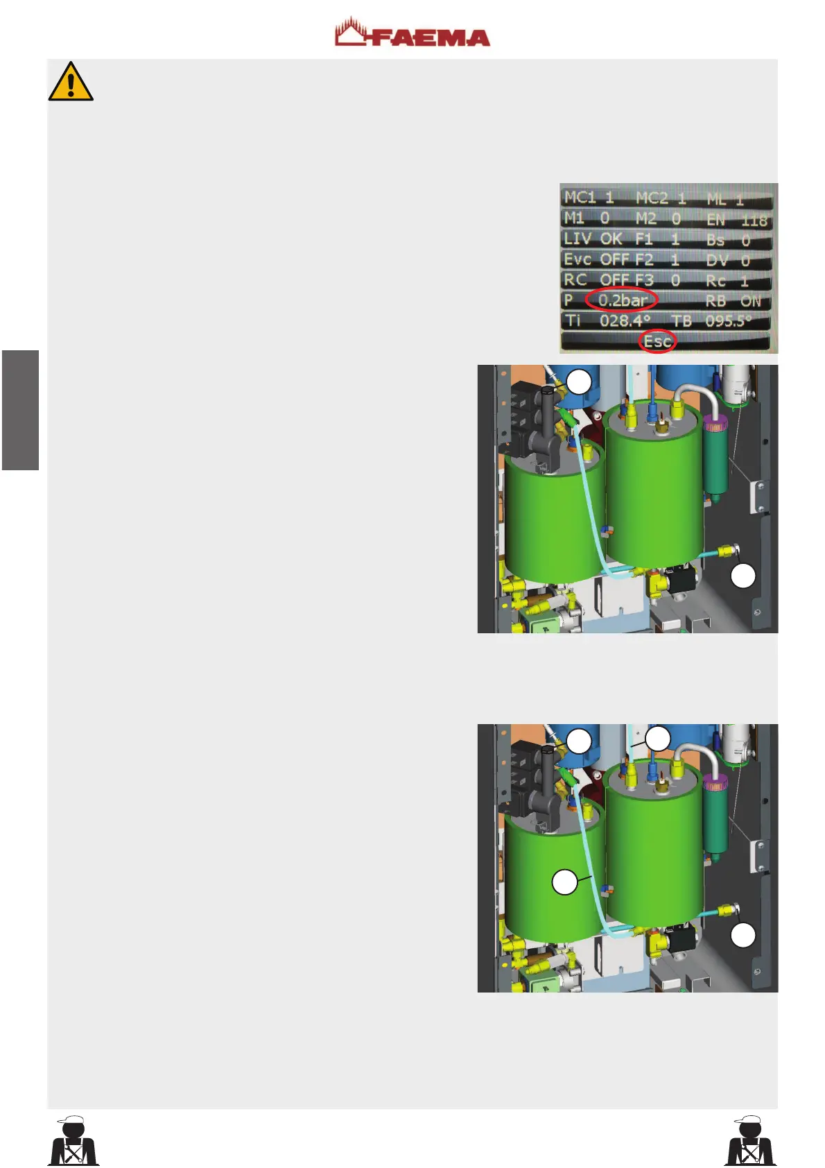d’évacuation “Esc” jusqu’à ce que la pression indiquée sur le visuel soit de 0,2