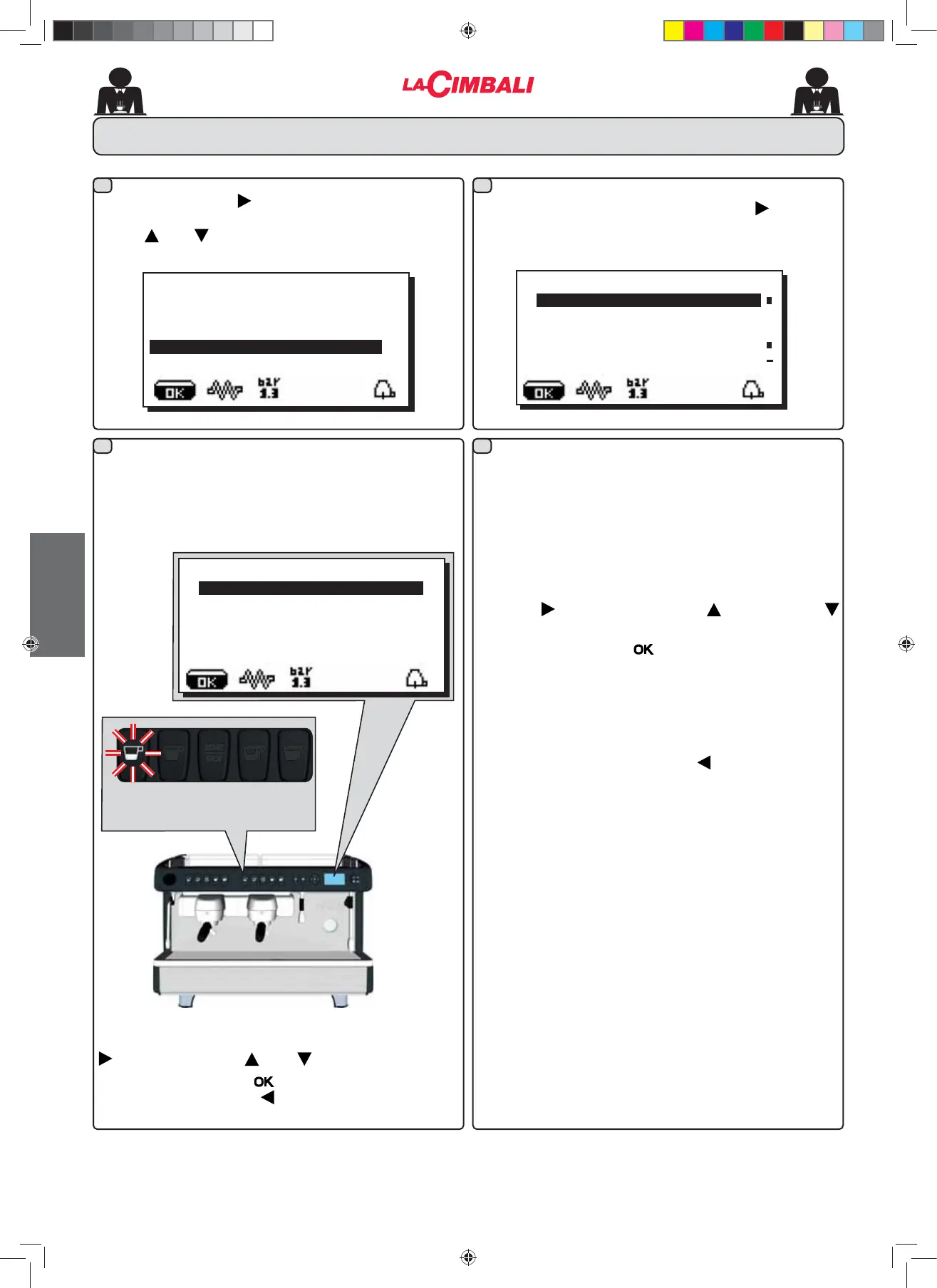 dazugehörige LED eingeschaltet und das Display zeigt die