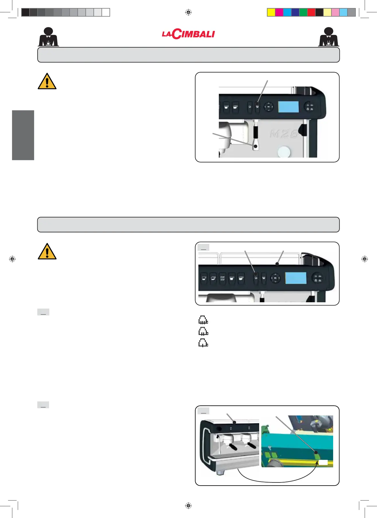 Keep the hot water distributor key (11) pressed down for