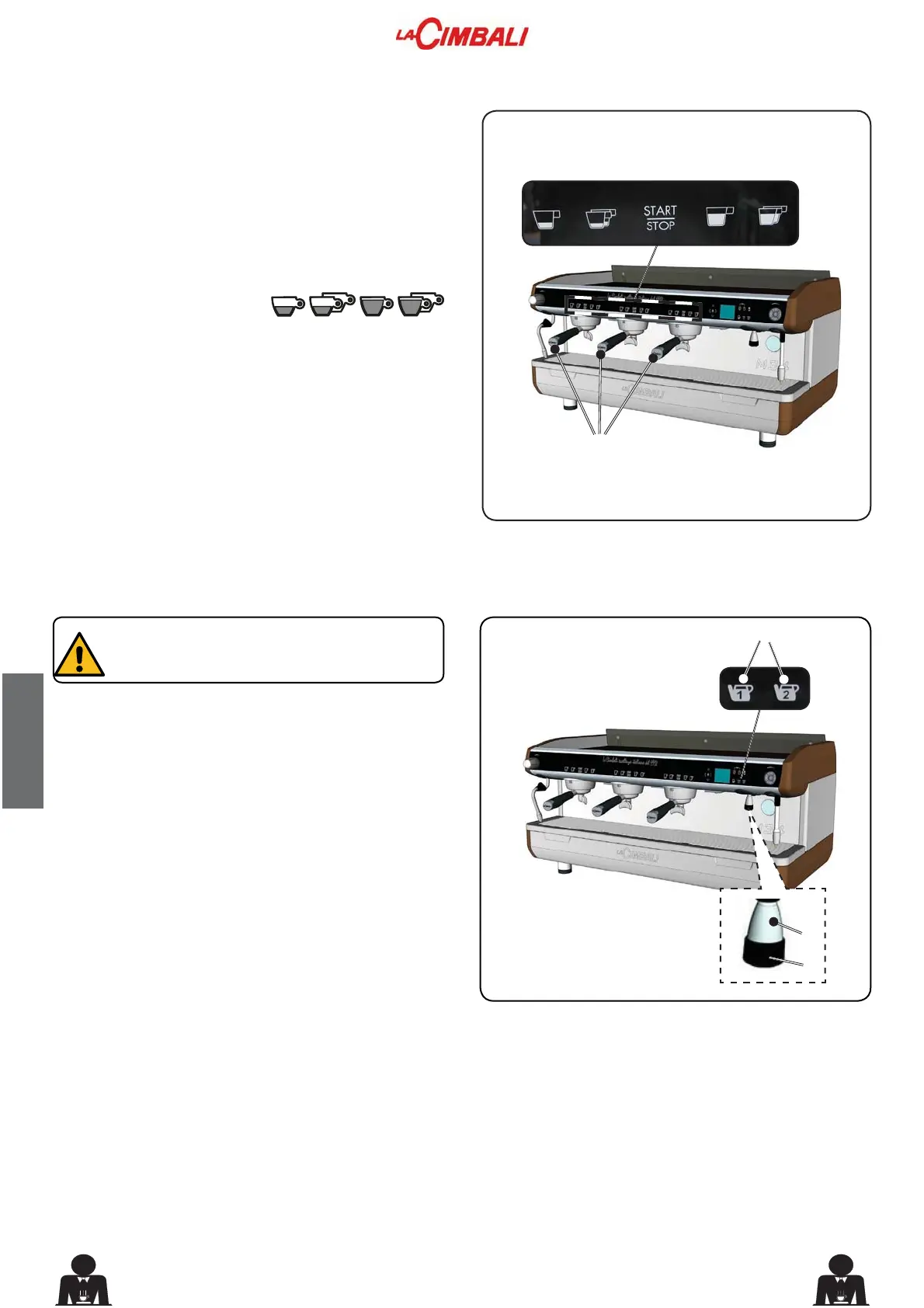 colocando la taza (o las tazas) debajo de la boquilla (o