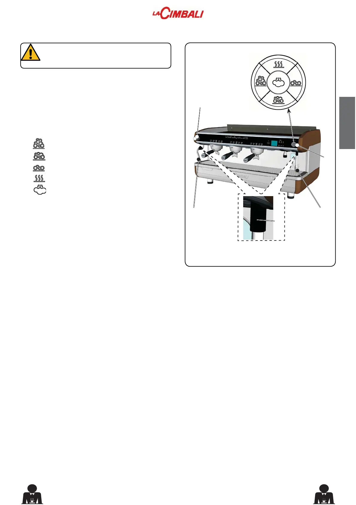 Insert the steam dispensing wand (9) in a suitable container.